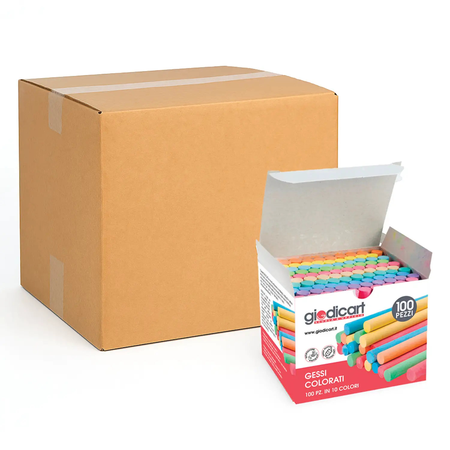 Gessetti Colorati Tondi Antipolvere GIODICART in Carbonato di Calcio, Anallergici, Perfetti per Lavagna in Ardesia e Attività Creative.