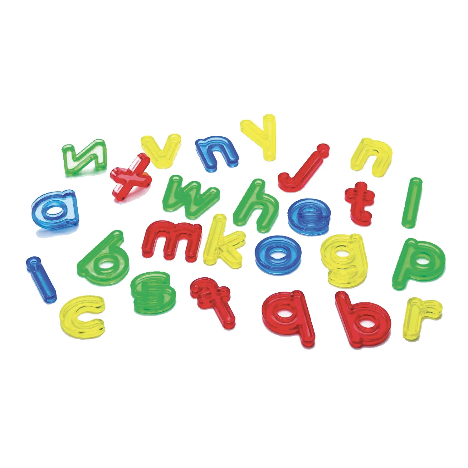 - ✅ Set completo di 26 lettere minuscole traslucide per attività linguistiche e creative.