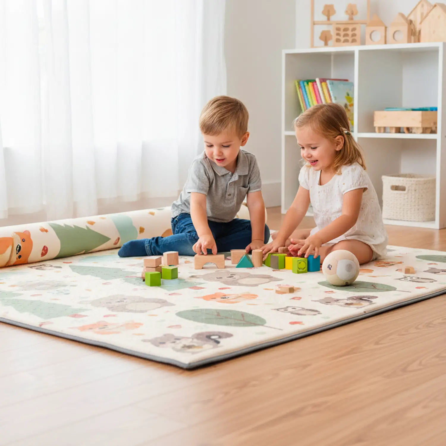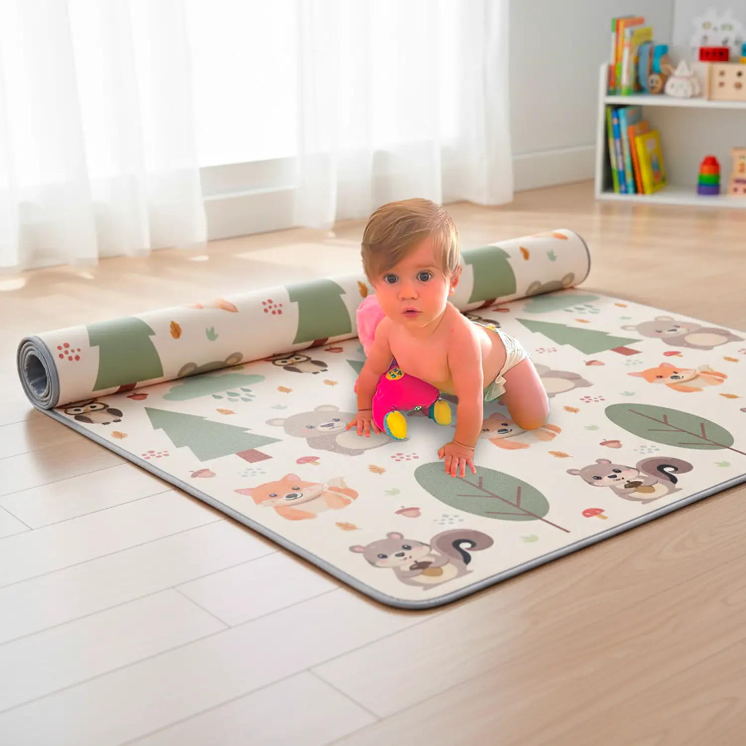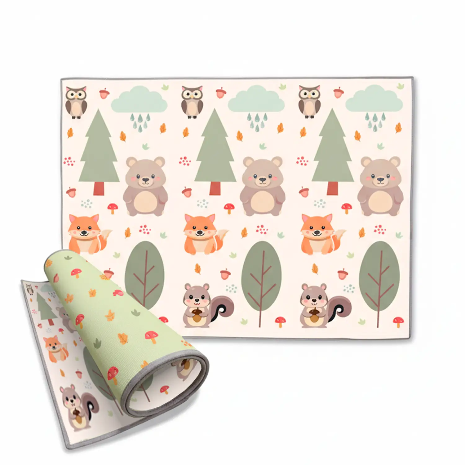 - ✅ Tappetino bifacciale con due scenari allegri e animali del bosco, ideale per ogni ambiente domestico.