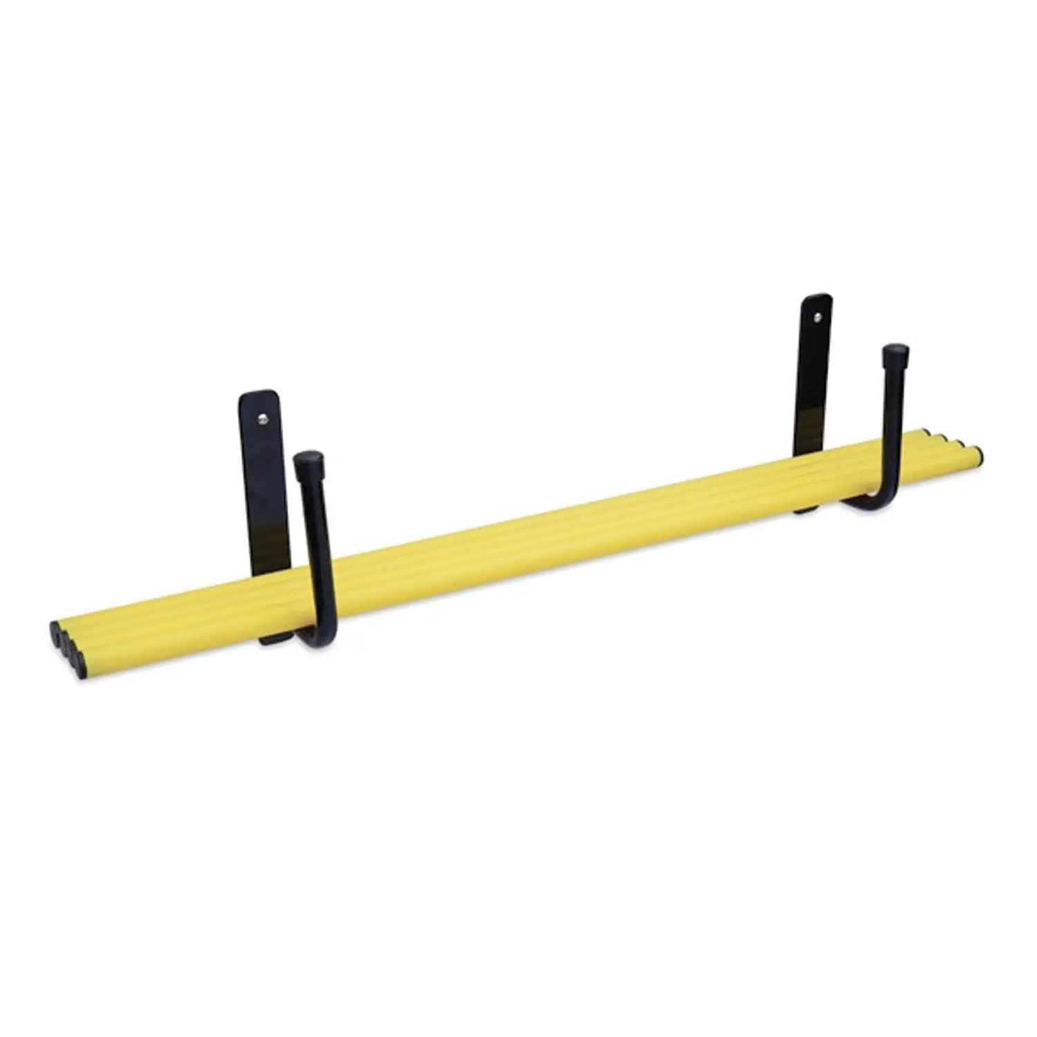 Coppia di supporti ad U in acciaio tubolare, verniciato a polvere per una maggiore durata, dotato di protezioni in plastica per la sicurezza. Montaggio facile su qualsiasi parete. Può contenere fino a 10 bastoni.