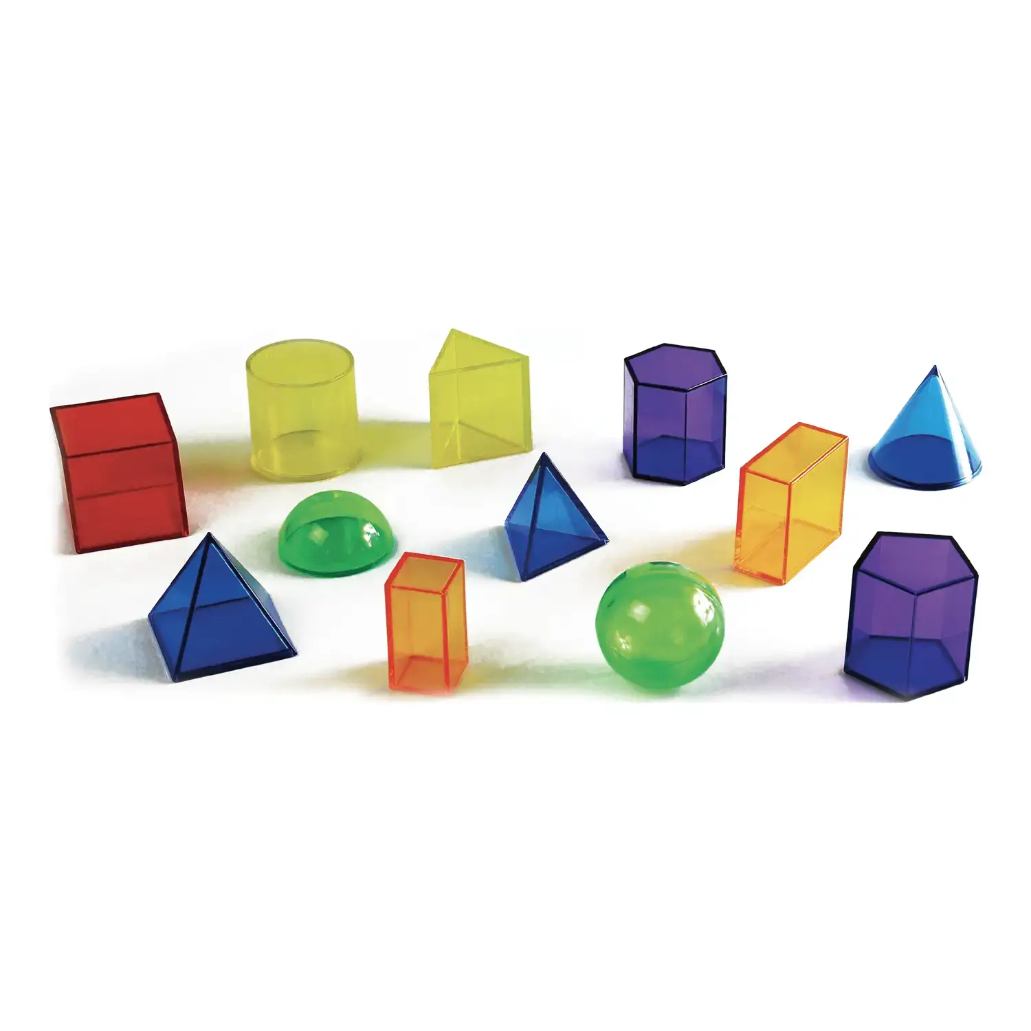 - 12 geometric solids in durable translucent plastic