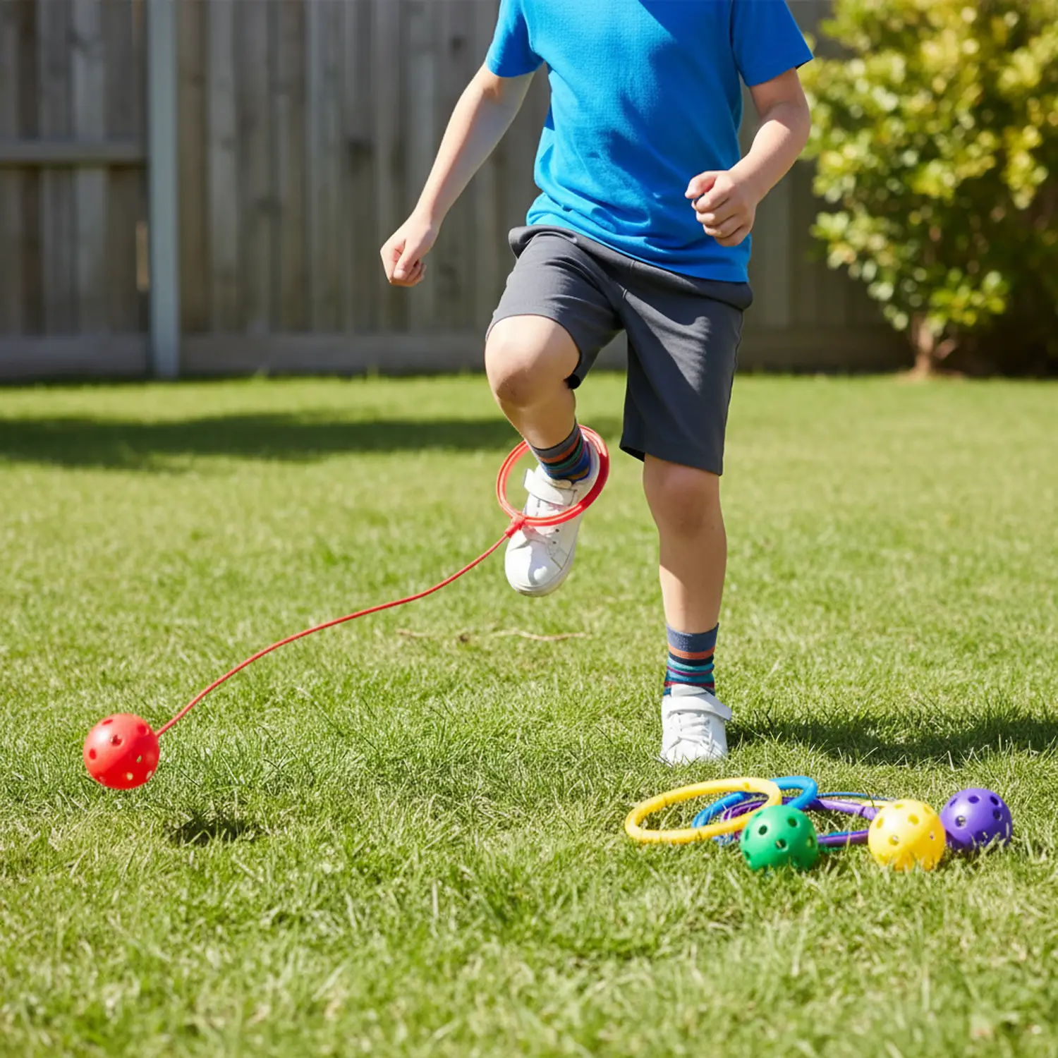 - Connected Design: Each anklet has a loop connected to a ball via a lanyard, ideal for jumping and motor coordination.