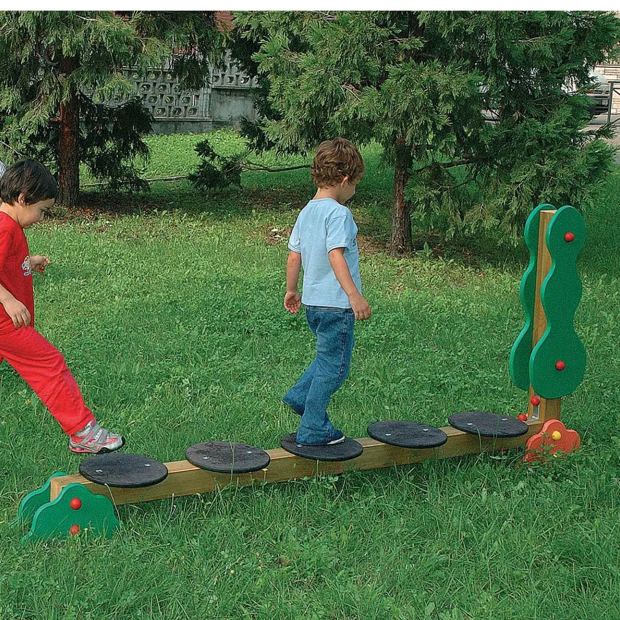 The drop height of a few centimeters allows children to safely perform their own evolutions, thus unleashing liveliness, coordination skills and a sense of balance.