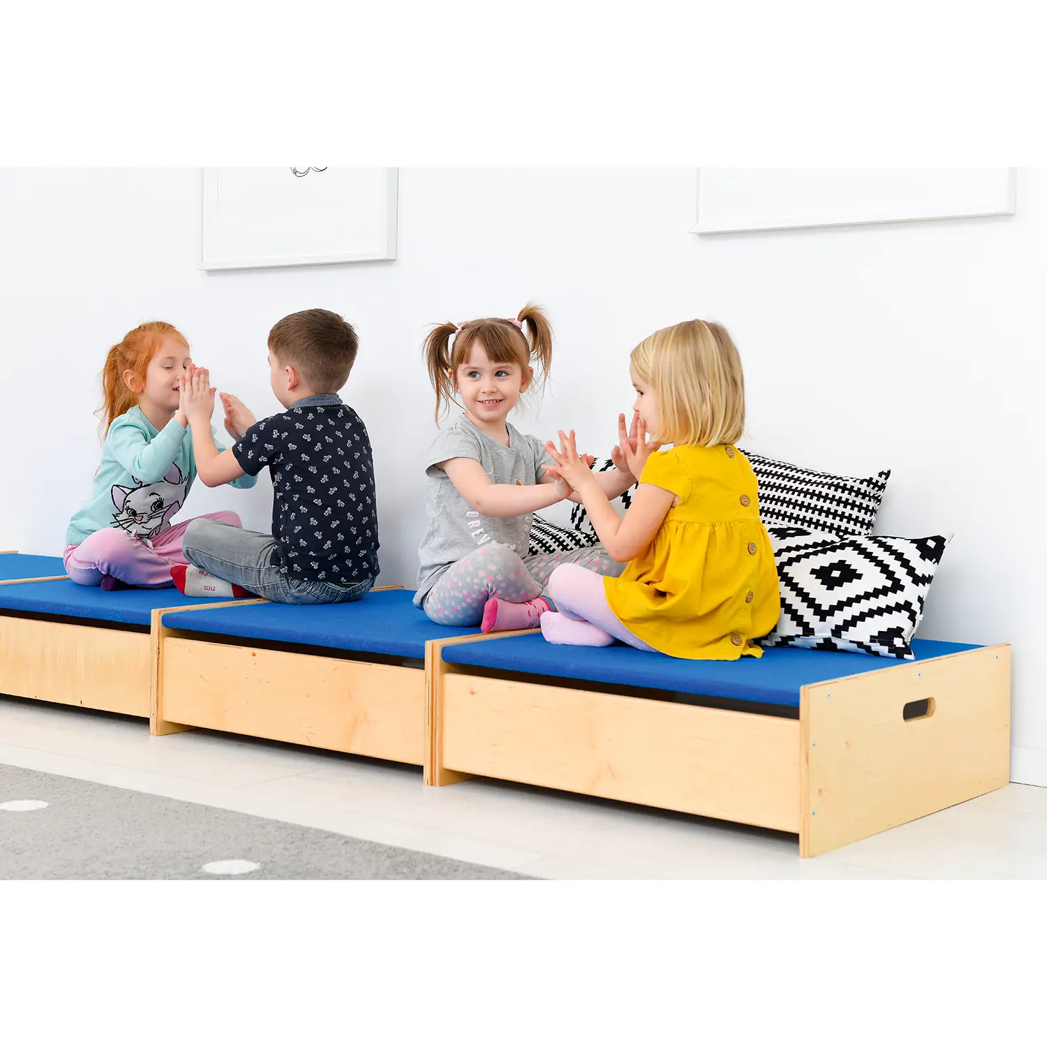 - Design Salvaspazio: Grazie alla possibilità di infilare una pedana nell’altra, il Palchetto offre una soluzione pratica per la gestione dello spazio, rendendolo ideale per aule e aree gioco di dimensioni ridotte.