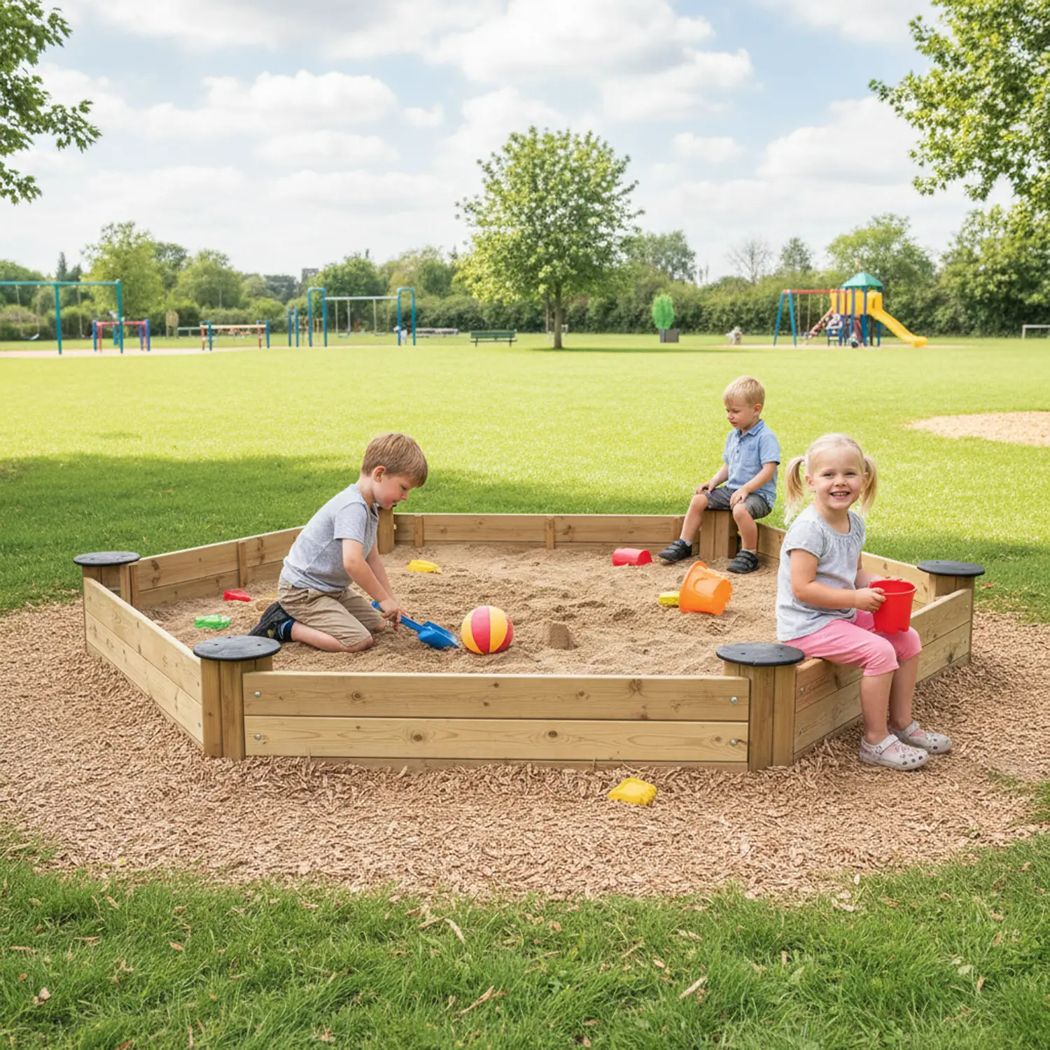 Sabbiera Esagonale in Legno per Bambini – Gioco da Esterno con Sedute Integrate