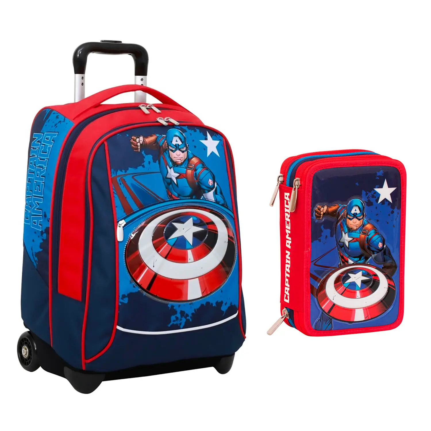 Schoolpack Captain America Legendary Avenger: Big Trolley Backpack with 3-Zip Pouch
