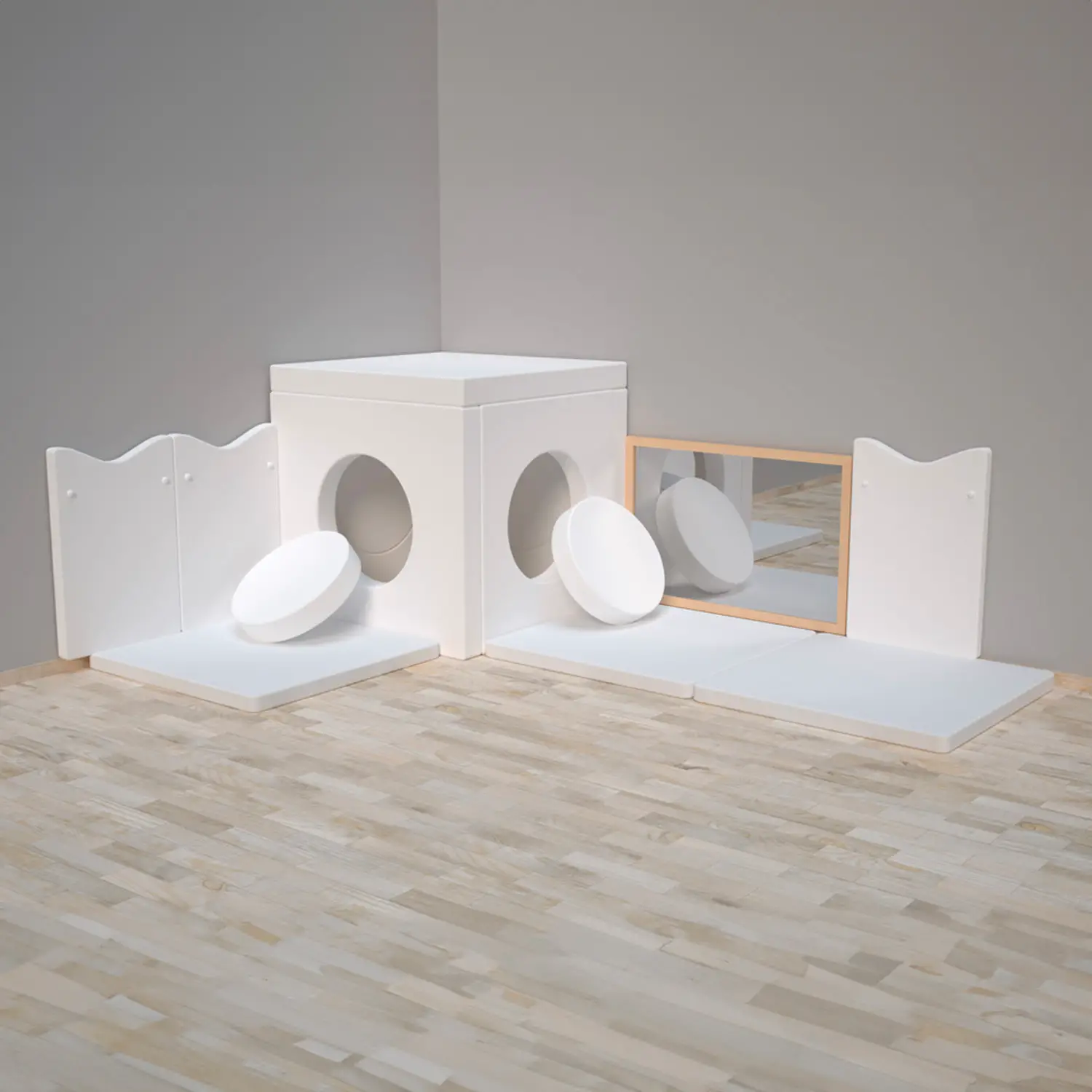 Il Set Avanzato Sensoriale Modulare è progettato per creare un angolo morbido, sicuro e stimolante, perfetto per nidi, scuole dell’infanzia, ambienti Snoezelen e spazi dedicati alla crescita e al benessere dei bambini.