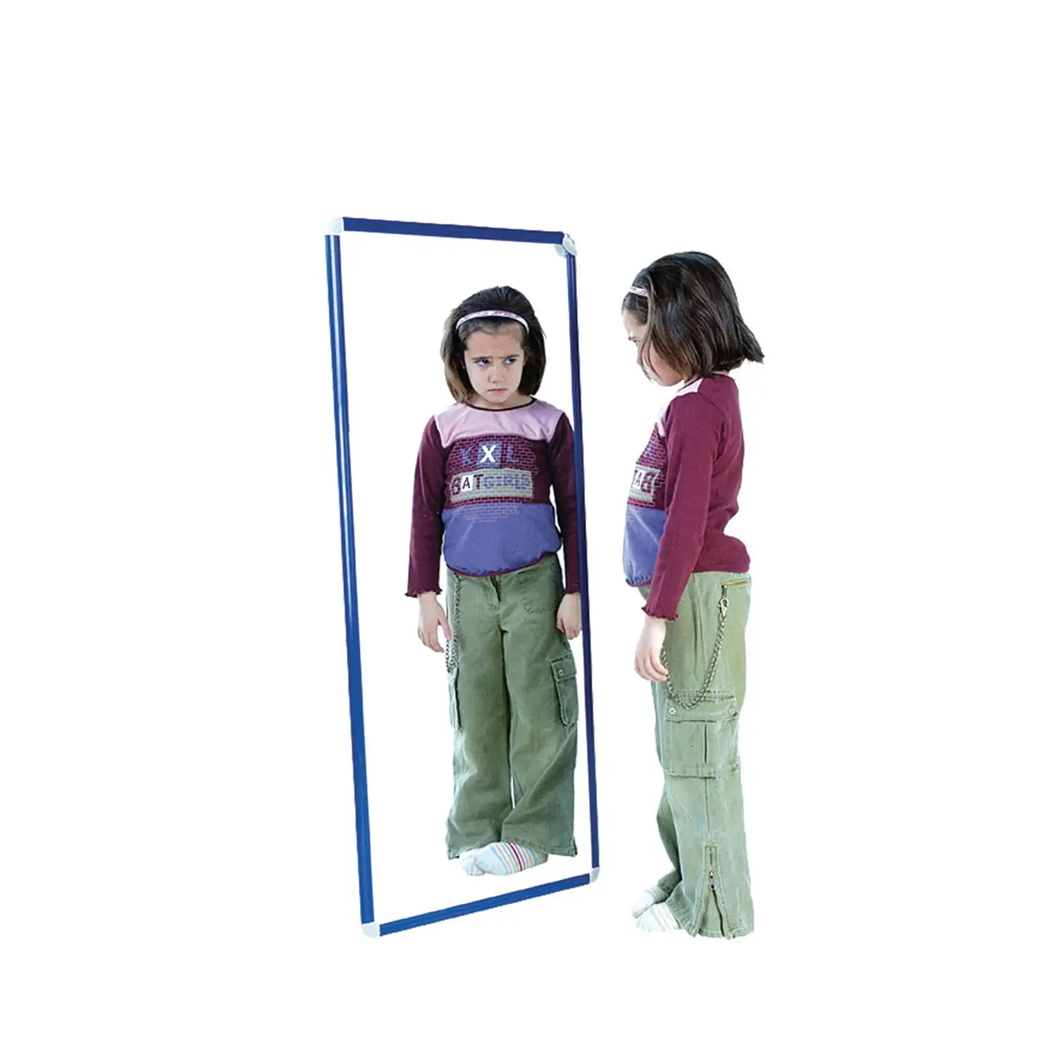 - ✅ Specchio con cornice in alluminio blu, resistente e leggera, ideale per scuole, asili e spazi ludici.