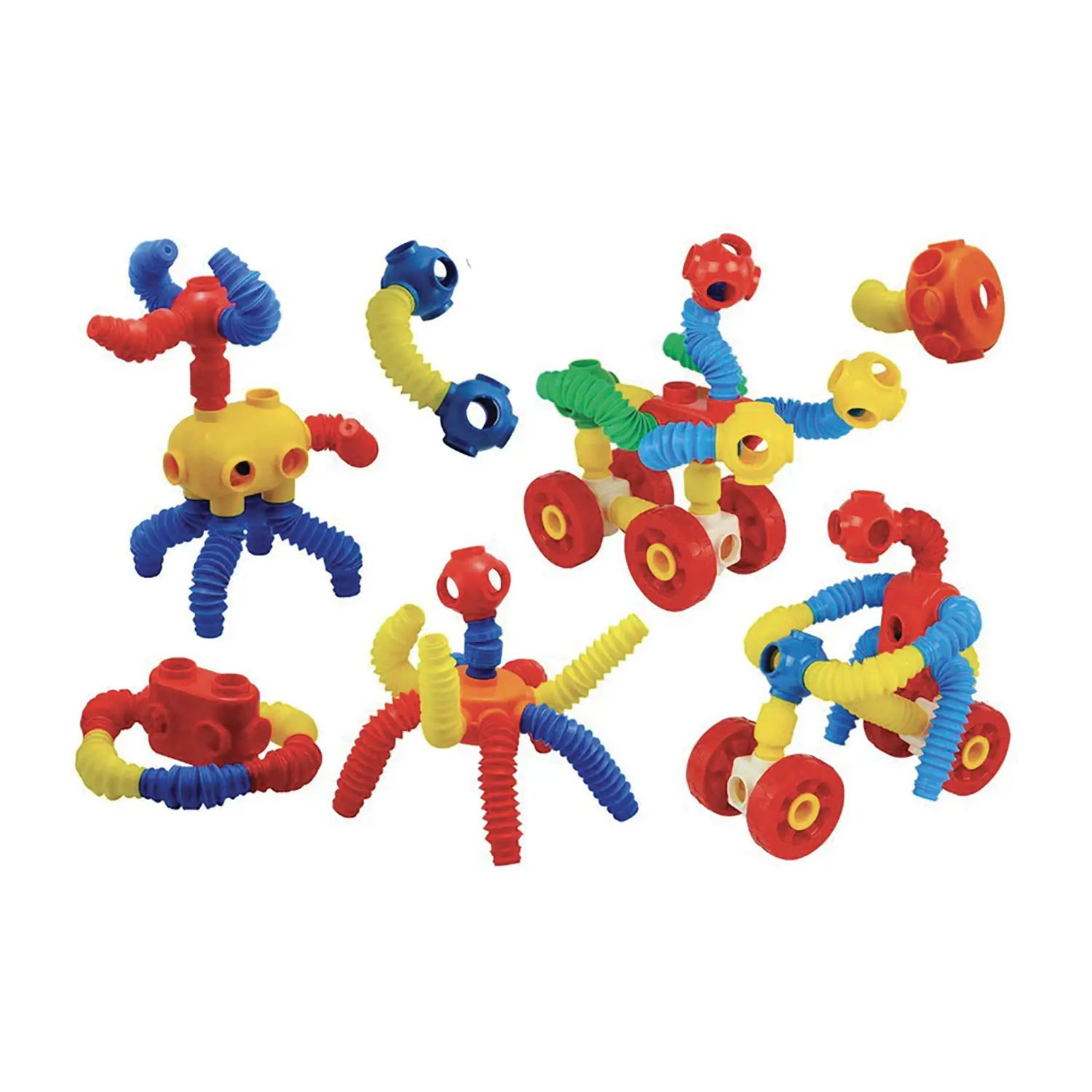 45 pezzi flessibili tra tubi, connettori e ruote ? Tubi piegabili, allungabili e modellabili liberamente ? Permette la costruzione di strutture e veicoli dinamici ? Stimola coordinazione, creatività e sperimentazione ? Confezionato in EcoCarton Box, sostenibile e resistente