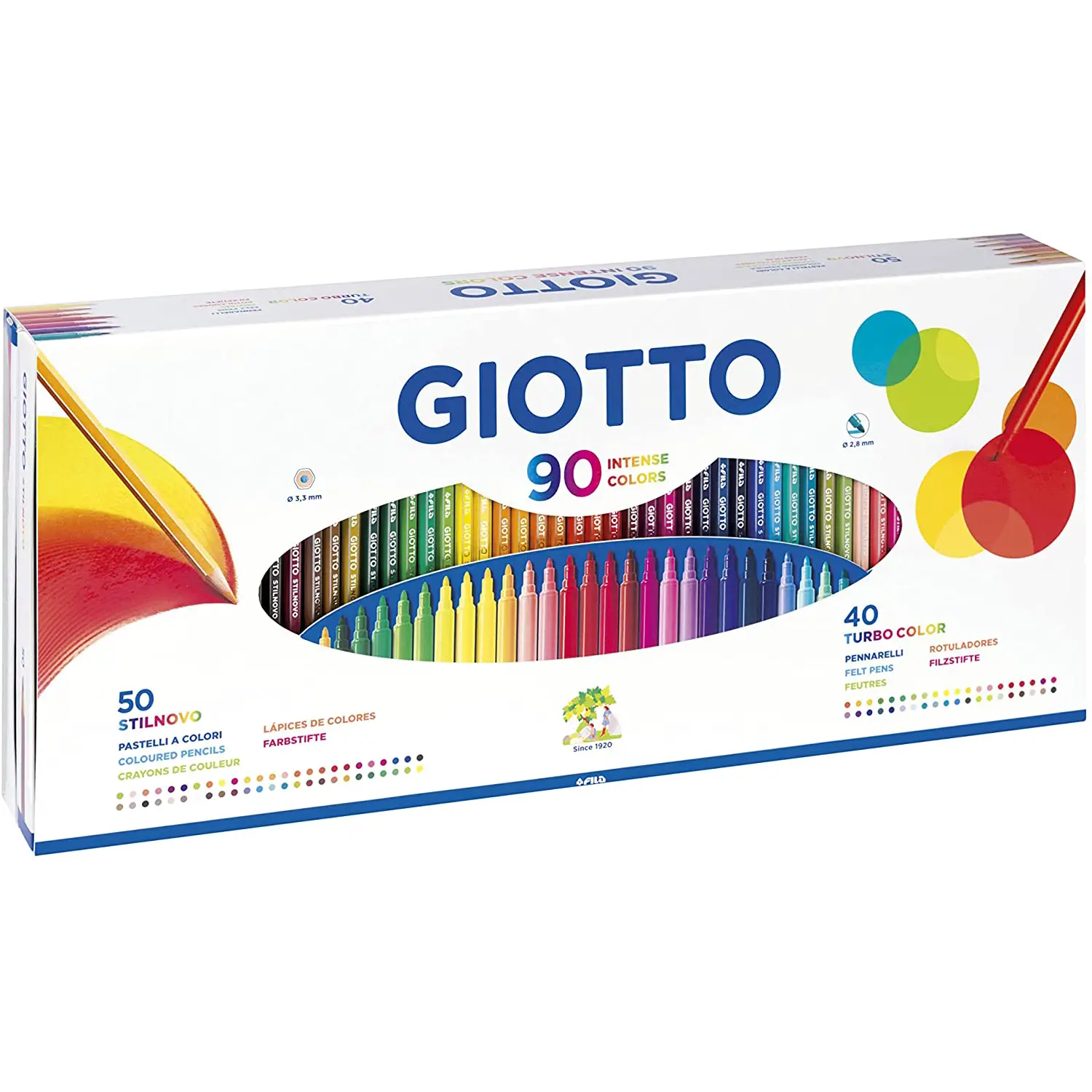 - ✅ Includes 50 Giotto Stilnovo crayons and 40 Giotto Turbo Color markers for limitless creativity.