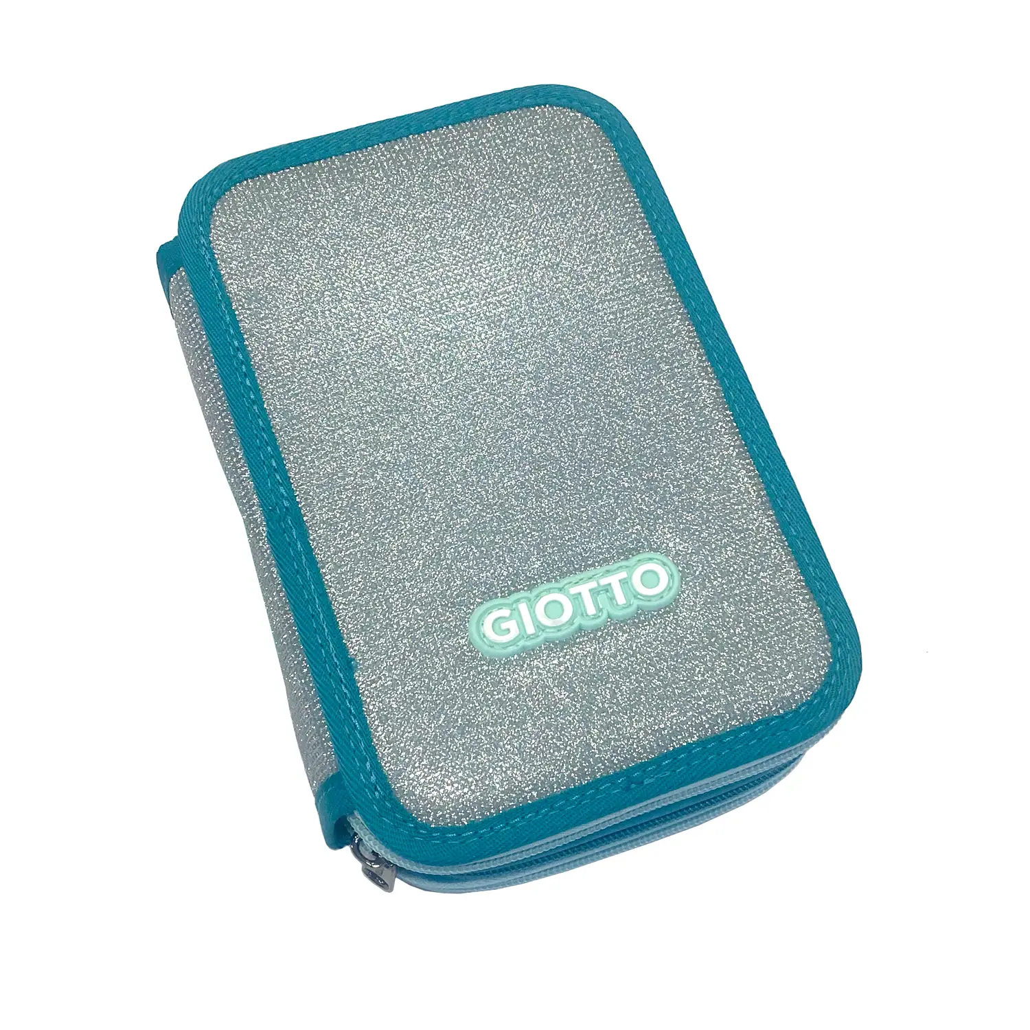 Premium high quality Giotto kit The pencil case includes everything you need for school: pencils, markers, Giotto Supermina crayons, pens, glue, ruler and scissors. Each tool is designed to stimulate creativity and simplify everyday life while keeping everything in perfect order.