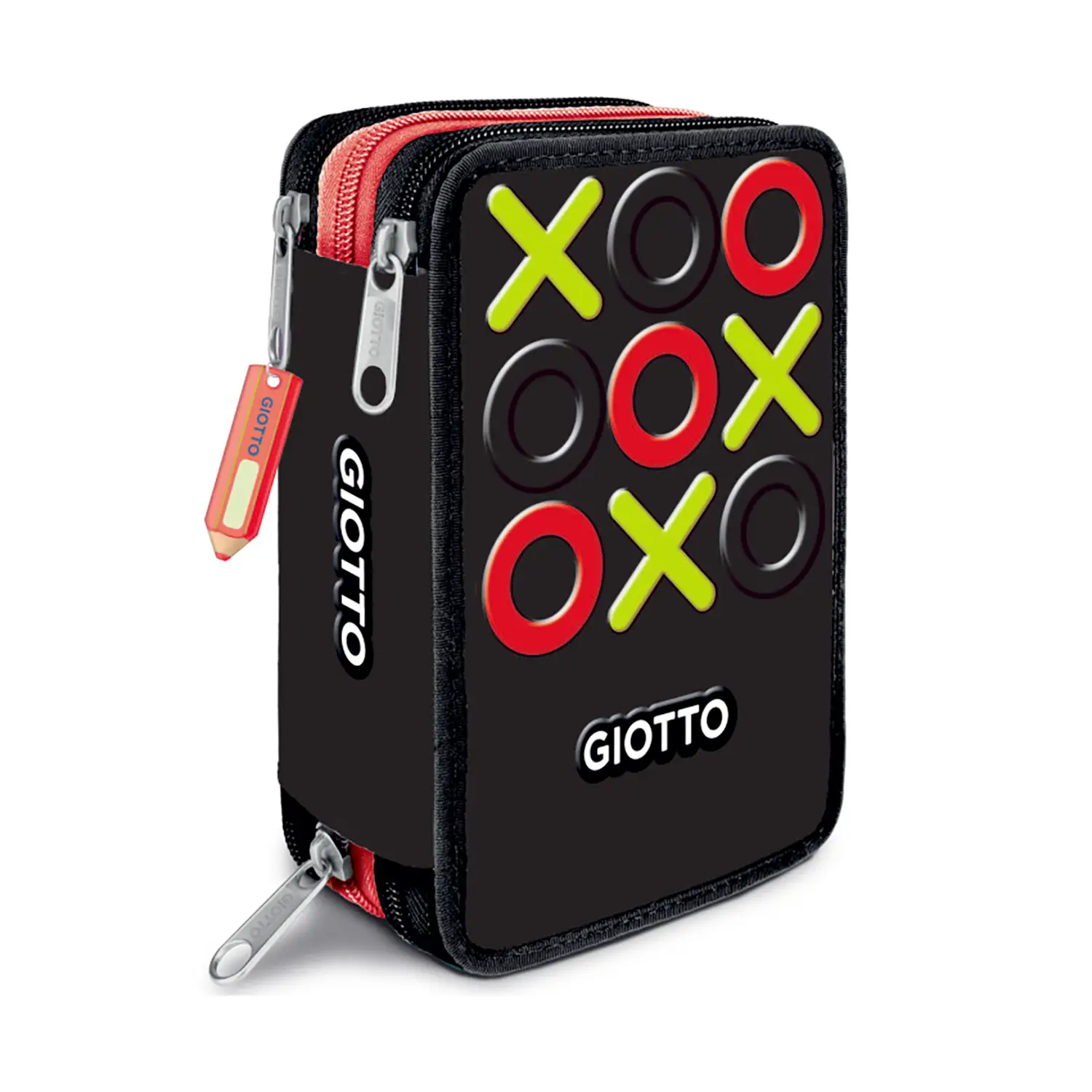 Giotto Premium Tris 3-Zip Pouch: practicality and style for school. Organize everything you need for your school days with Giotto's Premium Tris 3-Zip Pouch. Made of waterproof 900D polyester and featuring metal zippers, it is sturdy and designed to last.