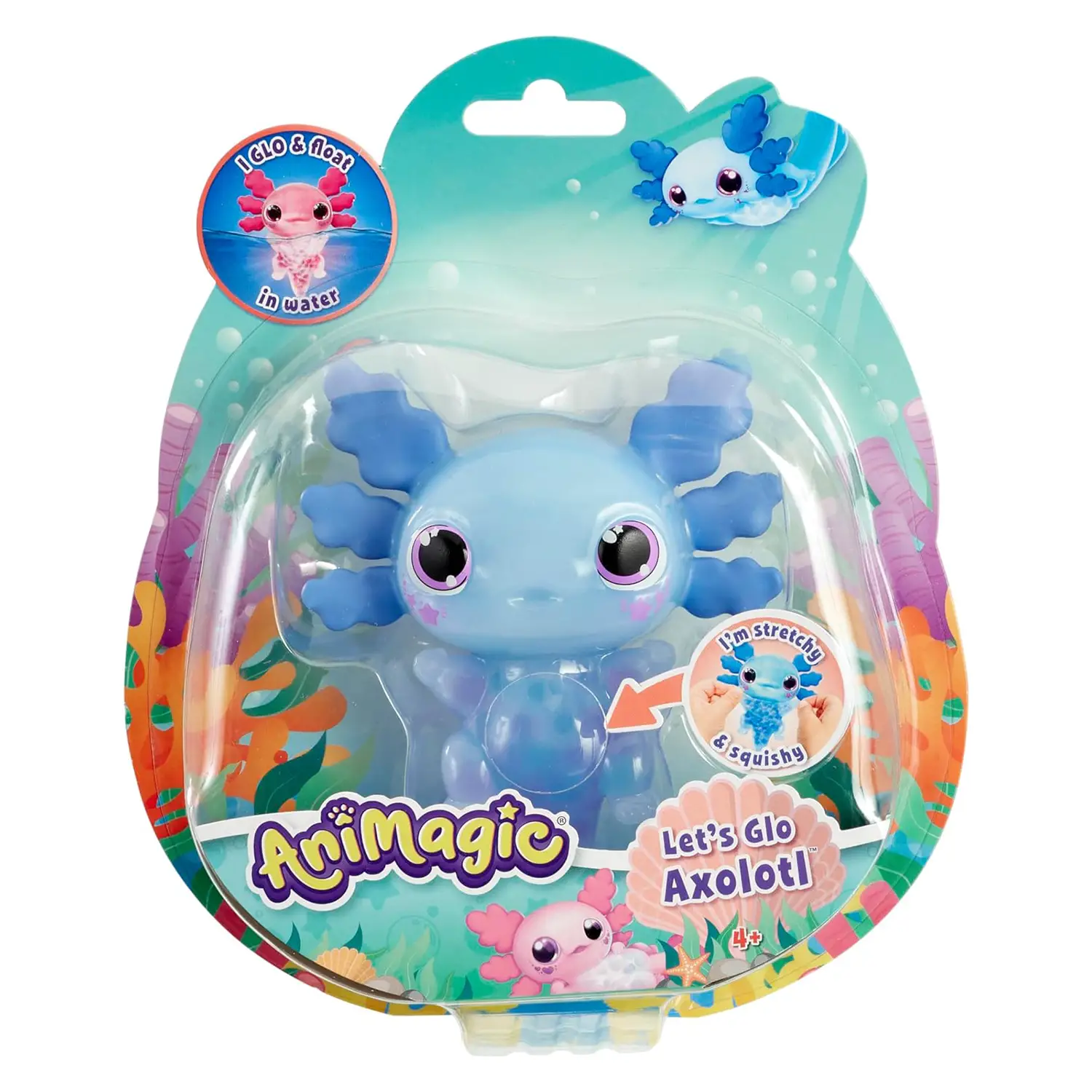 Animagic Let's Glo Axolotl: Blue Floating Bright Little Fish. Make bath time a magical adventure with Animagic's blue Axolotl. This electronic toy not only floats thanks to its unique buoyancy characteristics, but also lights up enchantingly when submerged in water.