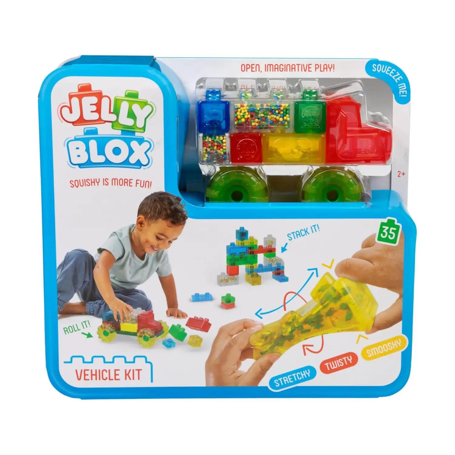 Divertimento Creativo Il Kit Veicolo Jelly Blox offre ai bambini la possibilità di spremere, allungare e costruire veicoli unici. Perfetto per stimolare la creatività e l’immaginazione.