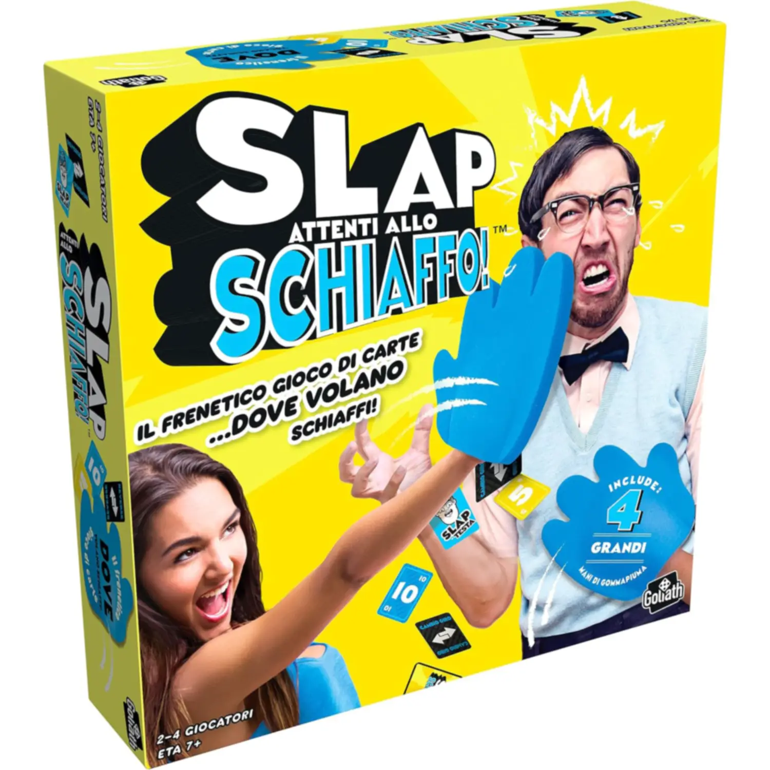 Scopri Slap – Attenti allo Schiaffo di GOLIATH, il gioco di carte frenetico e divertente perfetto per bambini dai 7 anni in su. Sfida amici e familiari a schiaffeggiare le carte al momento giusto e dimostra chi ha i riflessi più veloci!