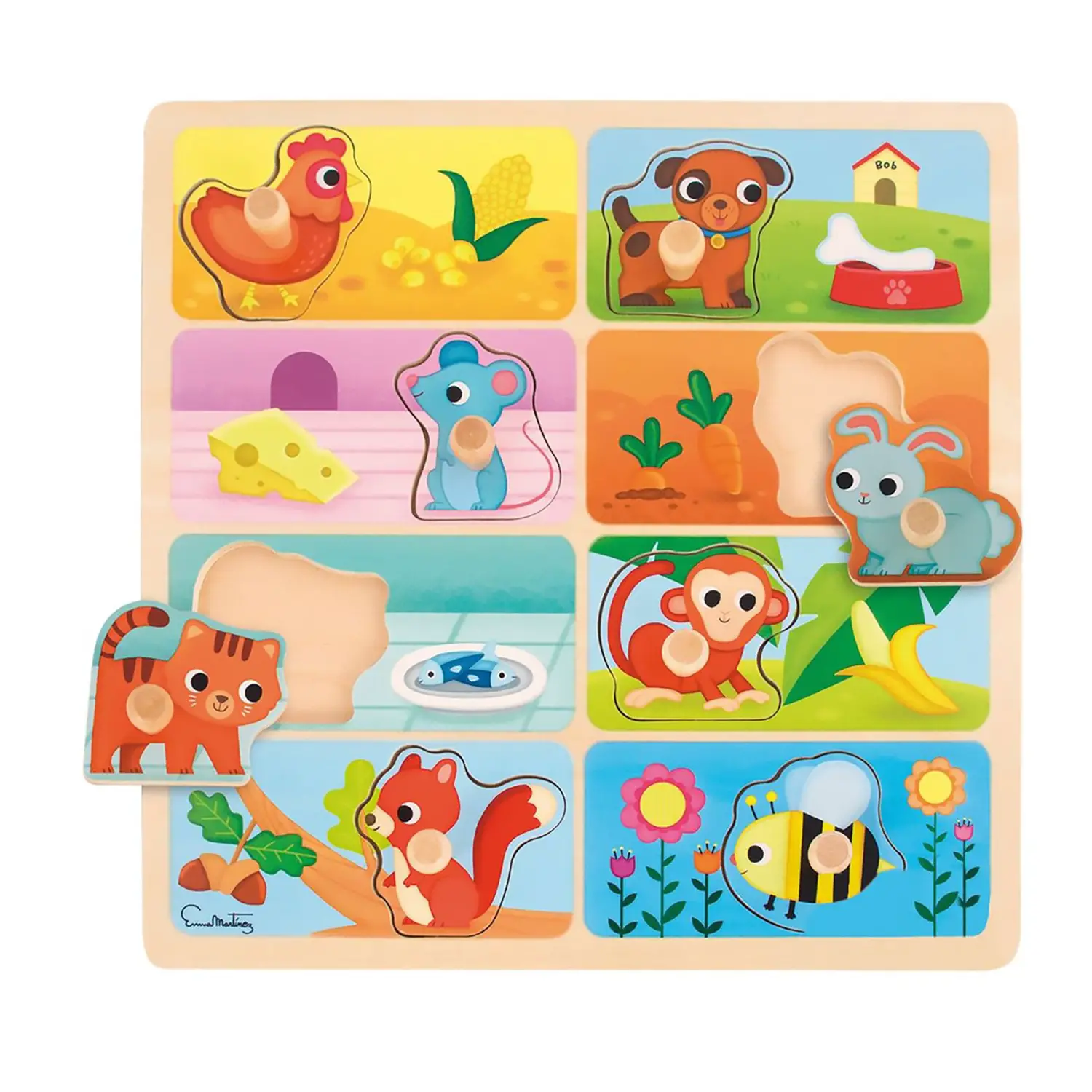 - ✅ Stimola lo sviluppo cognitivo tramite l'associazione tra animali e alimenti specifici.