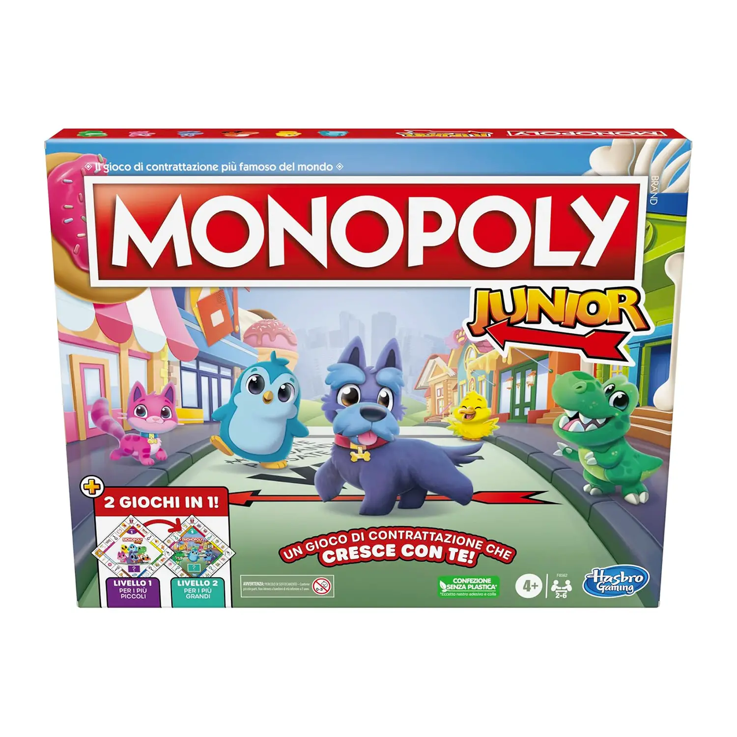 Gioco 2-in-1 perfetto per famiglie - Il Monopoly Junior 2-in-1 offre un tabellone fronte-retro con due versioni di gioco. Ideale per famiglie: un livello semplice per i più piccoli e uno avanzato per età superiori, garantendo divertimento prolungato e crescita del gioco.