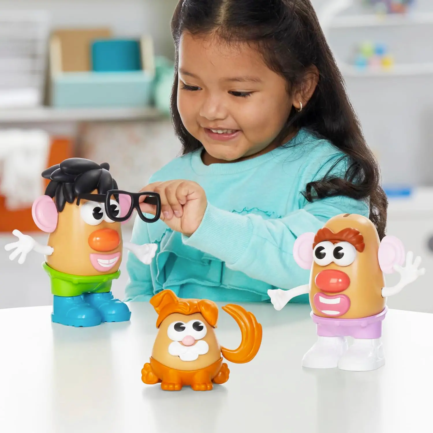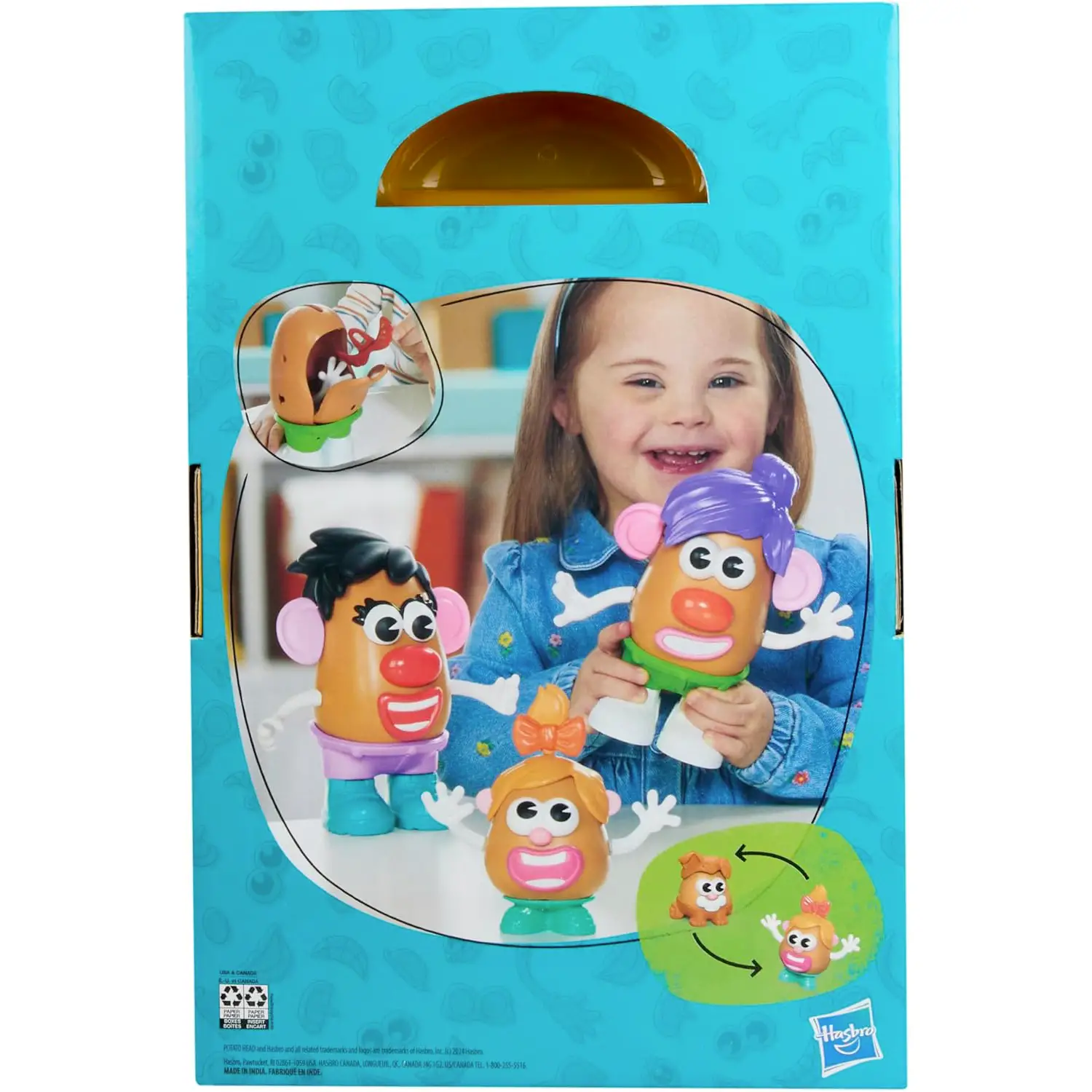 Contenitore Pratico e Intelligente Tutti i pezzi si ripongono facilmente nel grande contenitore a forma di patata, mantenendo l’area di gioco ordinata e rendendo il playset perfetto anche per il trasporto.
