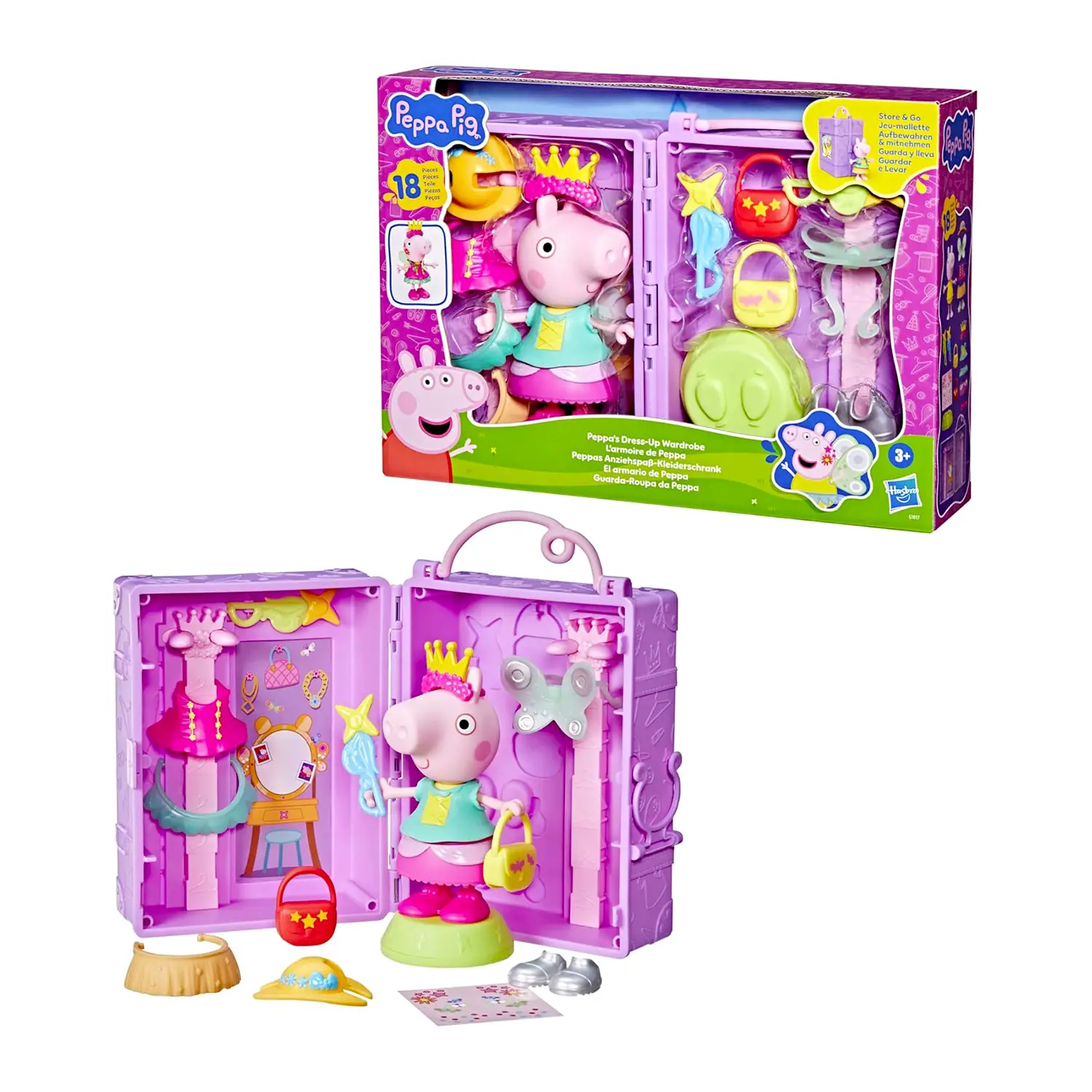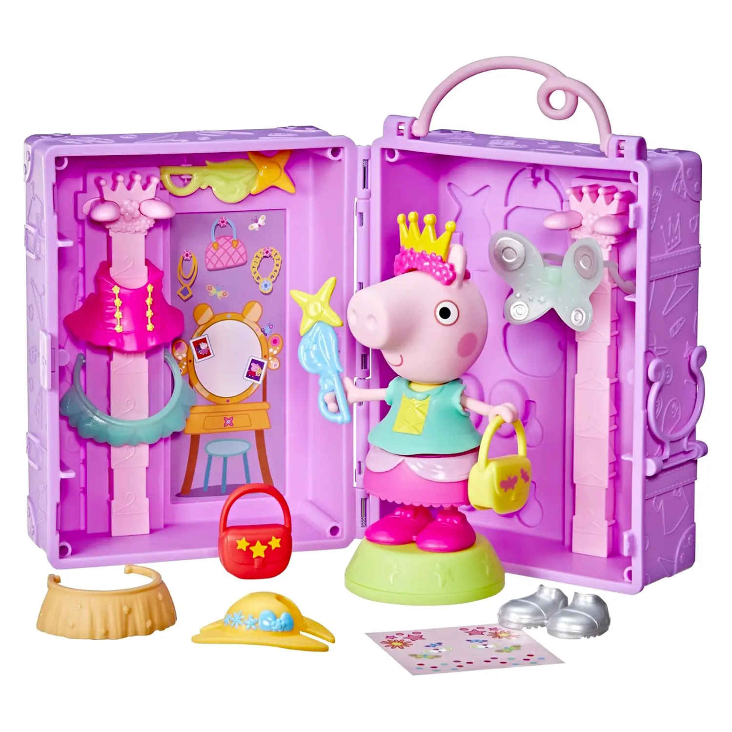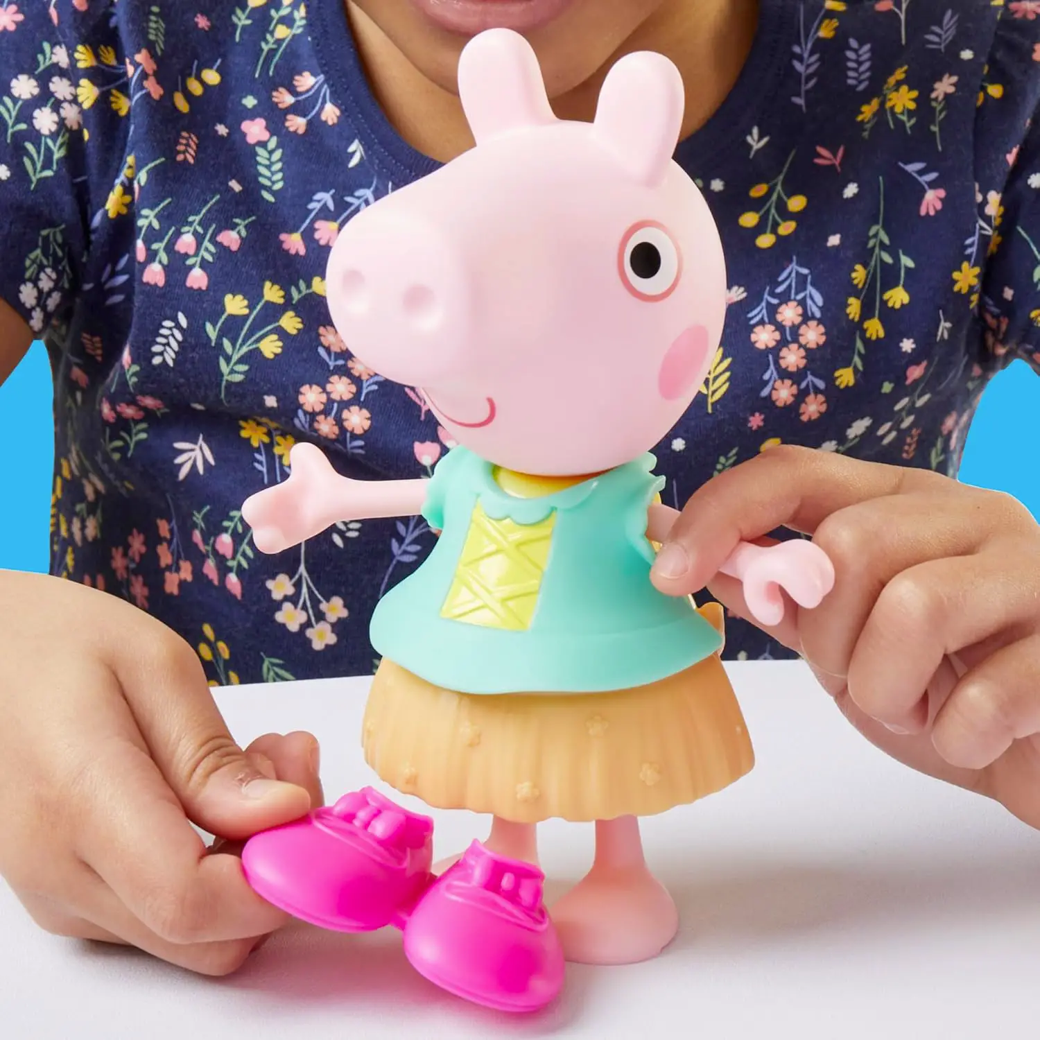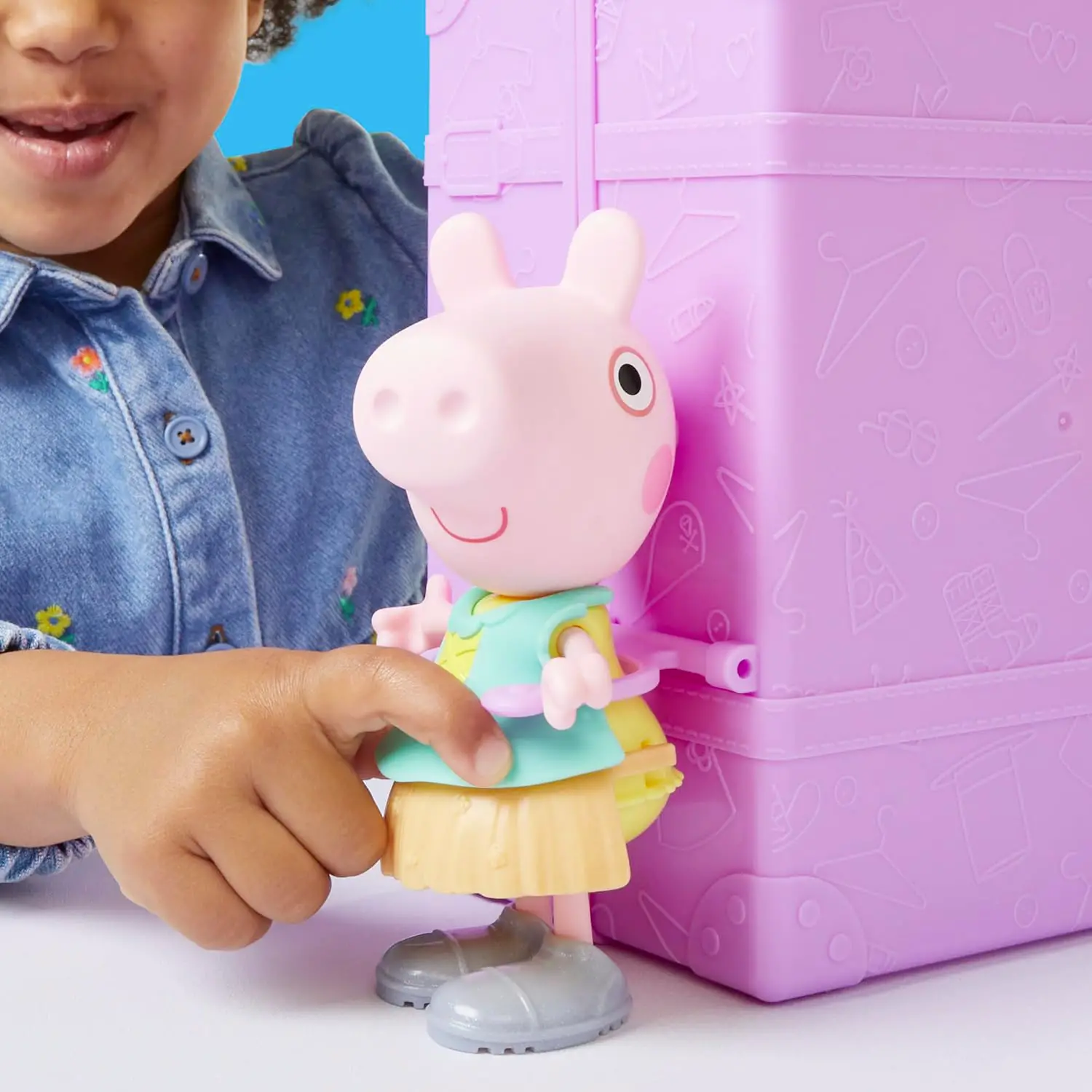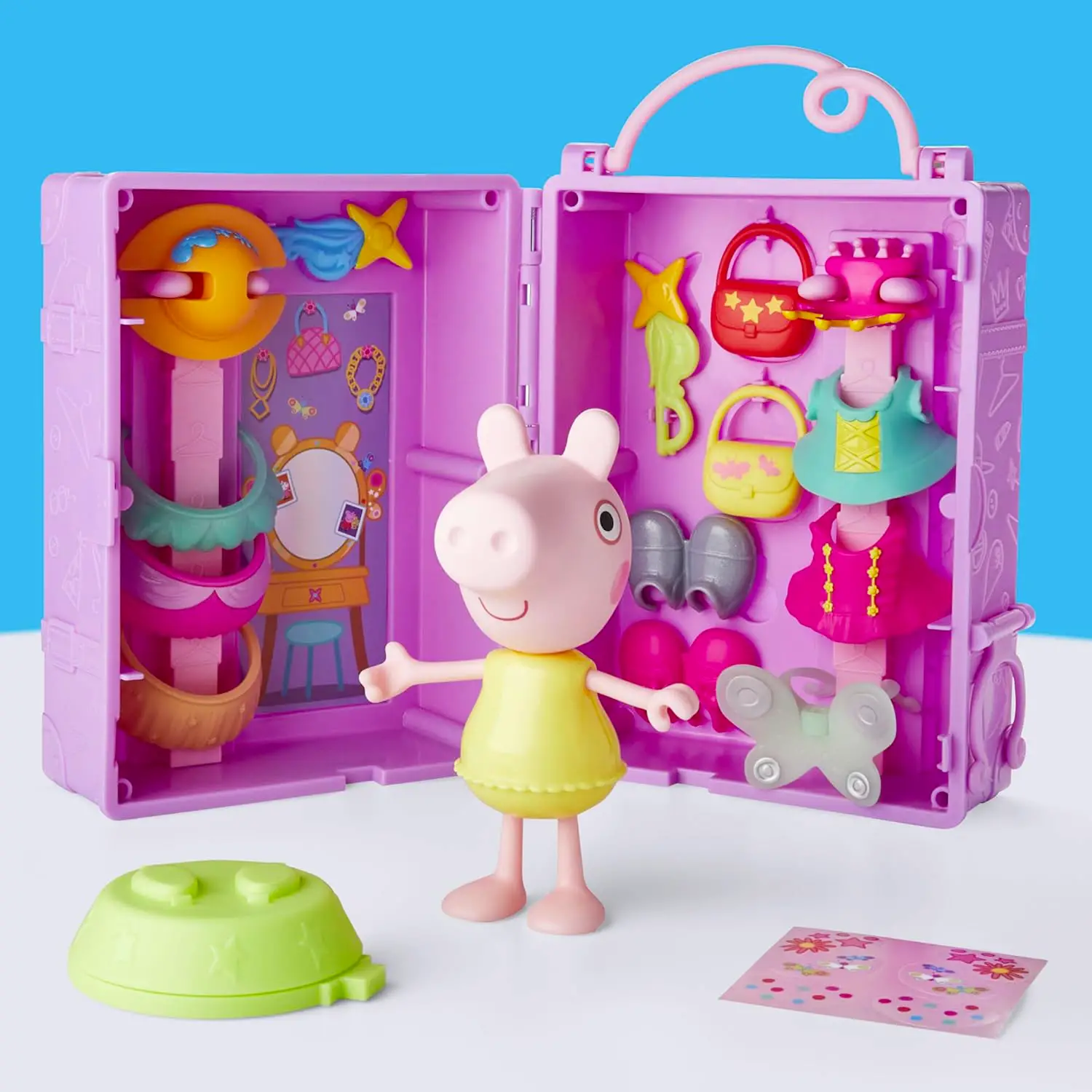 Irresistible Peppa Pig fashion set - Kit includes a 15 cm Peppa doll, 14 fashion accessories, swivel stand and book case, designed for preschoolers. Perfect for stimulating creativity, personal style and symbolic play in an easy and fun way.
