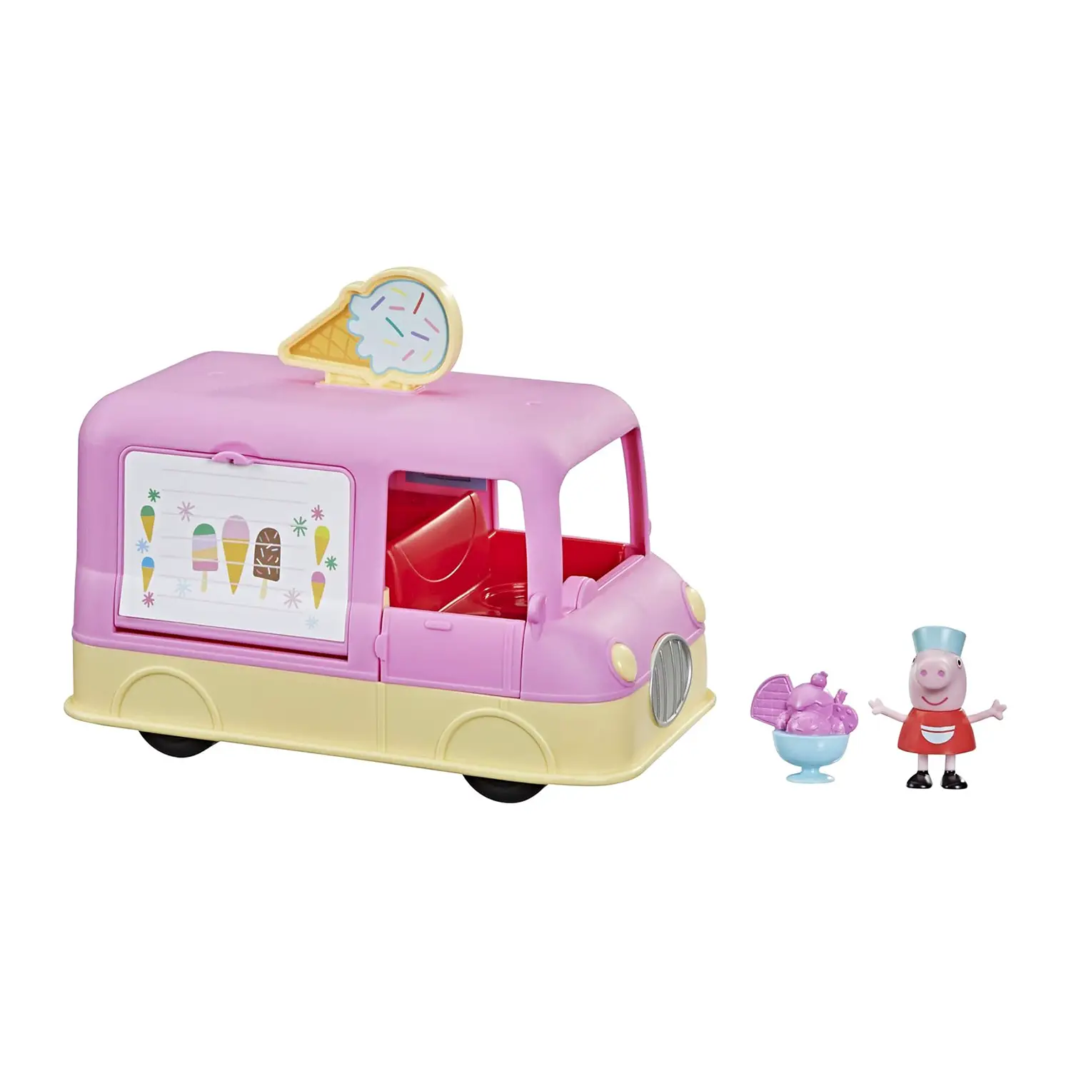 Complete set for role-playing Includes vehicle with giant cone on the roof, a Peppa figure and an ice cream accessory. Peppa can be positioned in the driver's seat or inside the van, ready to serve sweets to her friends.