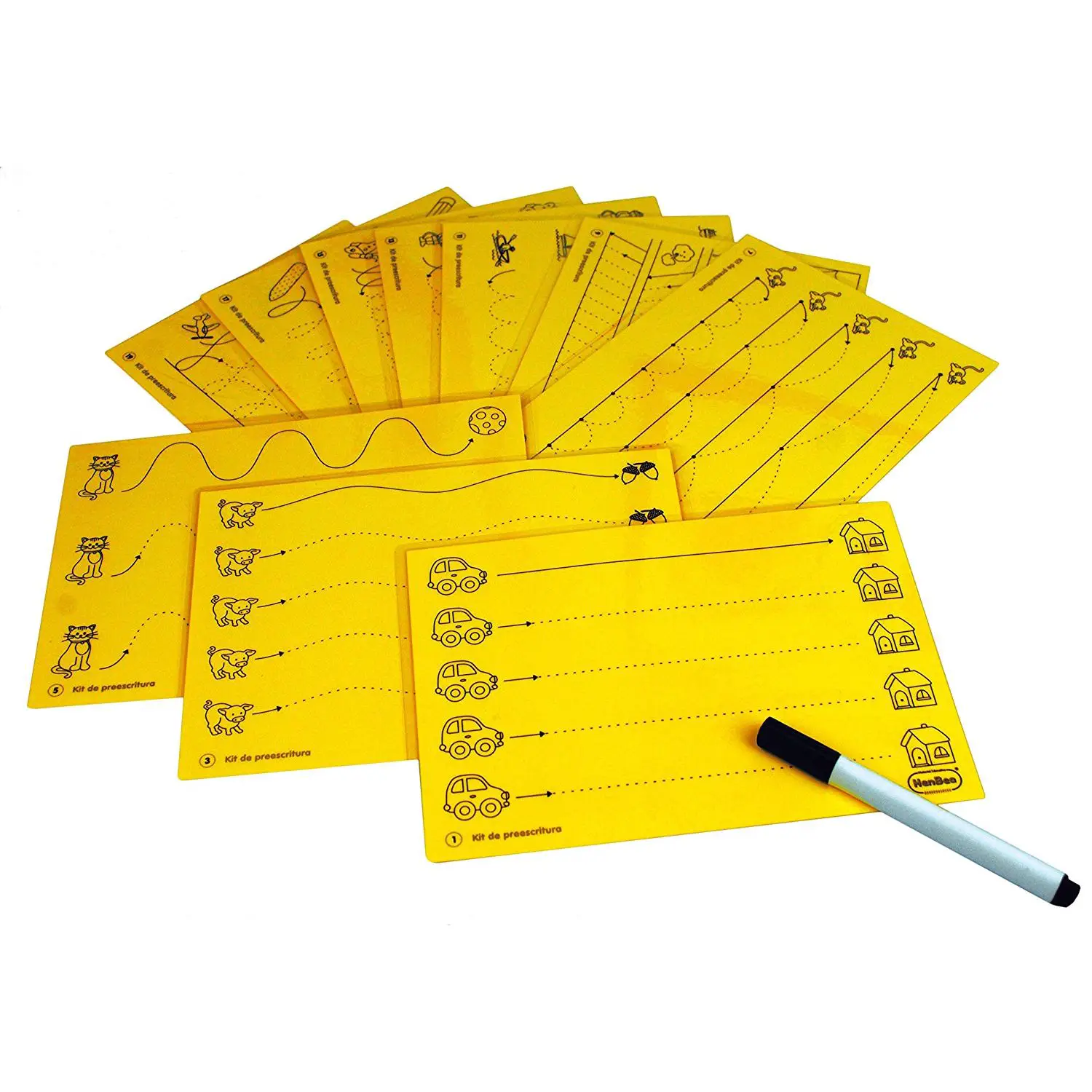 - ✅ Set di 10 schede pregrafismo plastificate, ideali per bambini in età prescolare.