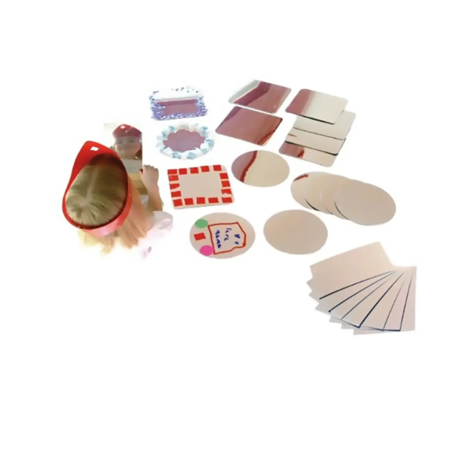 - ✅ Set di 8 specchi sicuri rettangolari, ideali per scuole dell'infanzia e ambienti educativi.