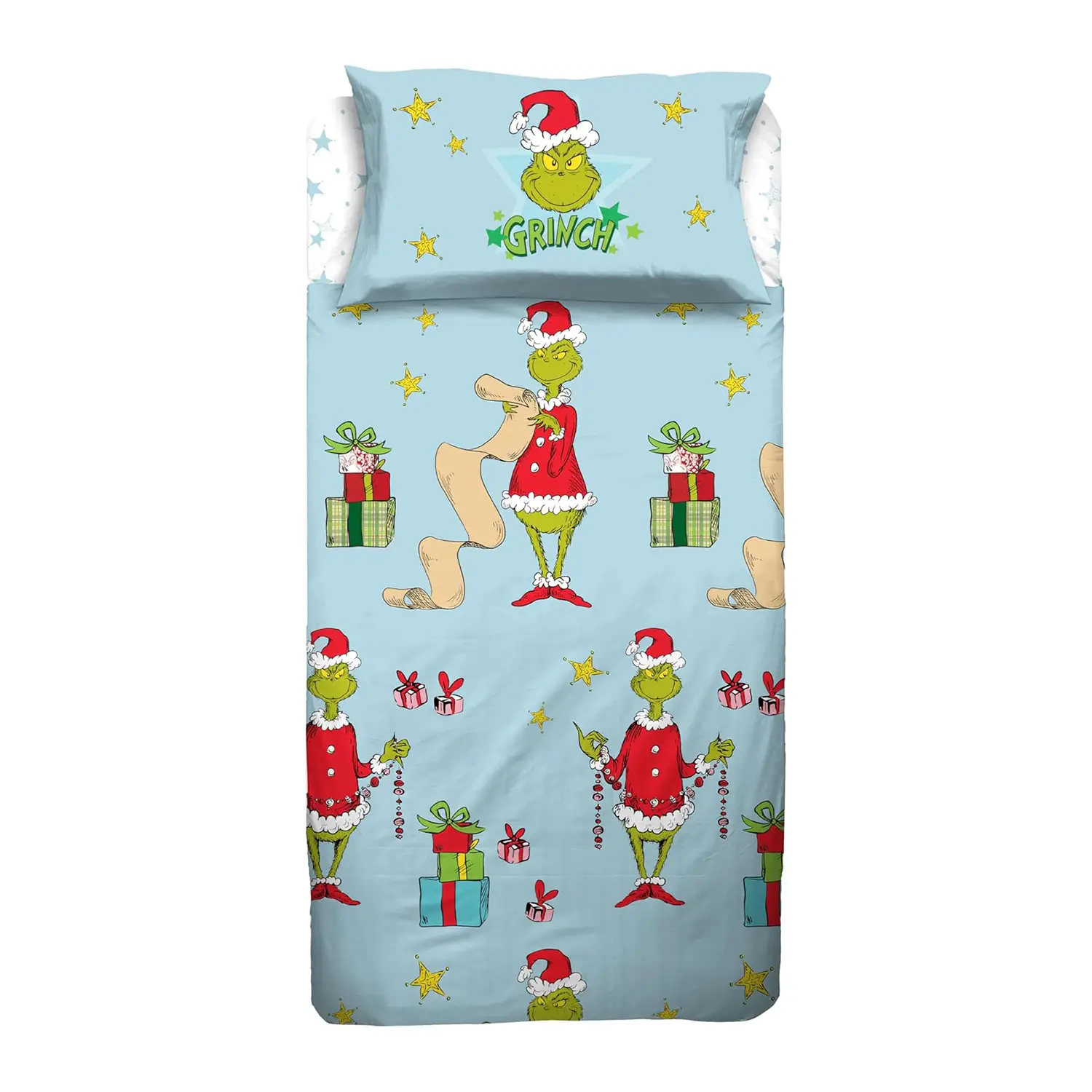 - ✅ Design vivace Grinch: stampa colorata ispirata al personaggio natalizio, per un tocco unico alla camera.