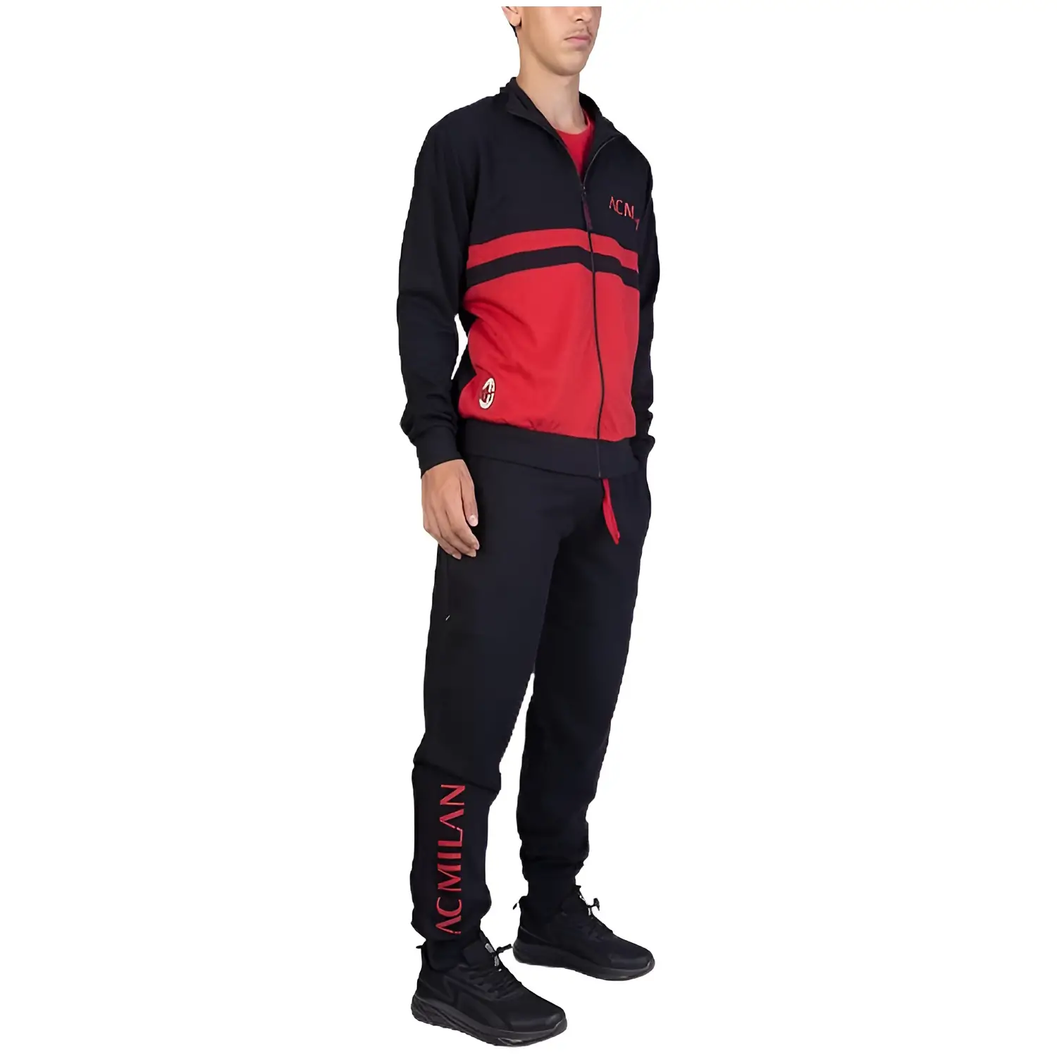 Sporty Design with Milan Logo The tracksuit includes a full-zip sweatshirt and adjustable drawstring pants, both featuring the official Milan logo. Available in two colors, red and black, it allows fans to show their support in style.