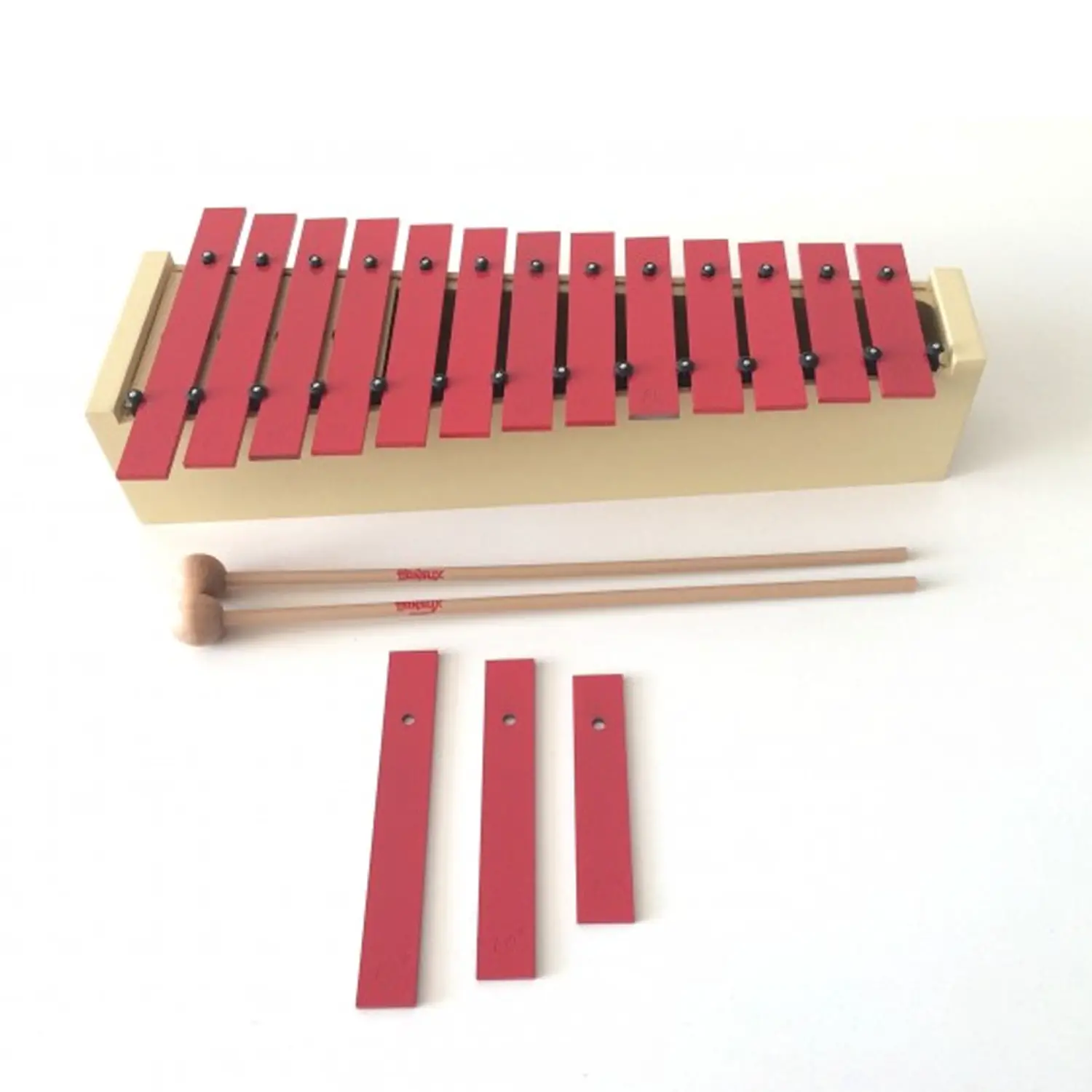 - ✅ Include 13 piastre intonate Do/La in acciaio verniciato rosso e 3 piastre aggiuntive per ampliare la gamma.