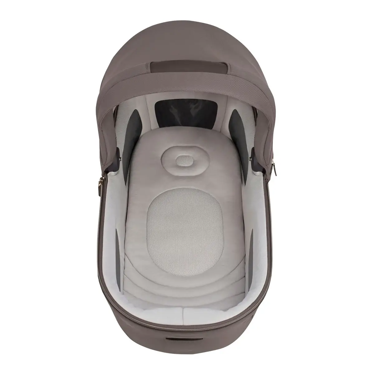 Navicella Maxi con ventilazione avanzata La navicella ampia (79×37 cm) è dotata di 5 finestre di ventilazione indipendenti, struttura rigida protettiva e rivestimenti in cotone e fibra di bambù traspiranti, sfoderabili e lavabili.