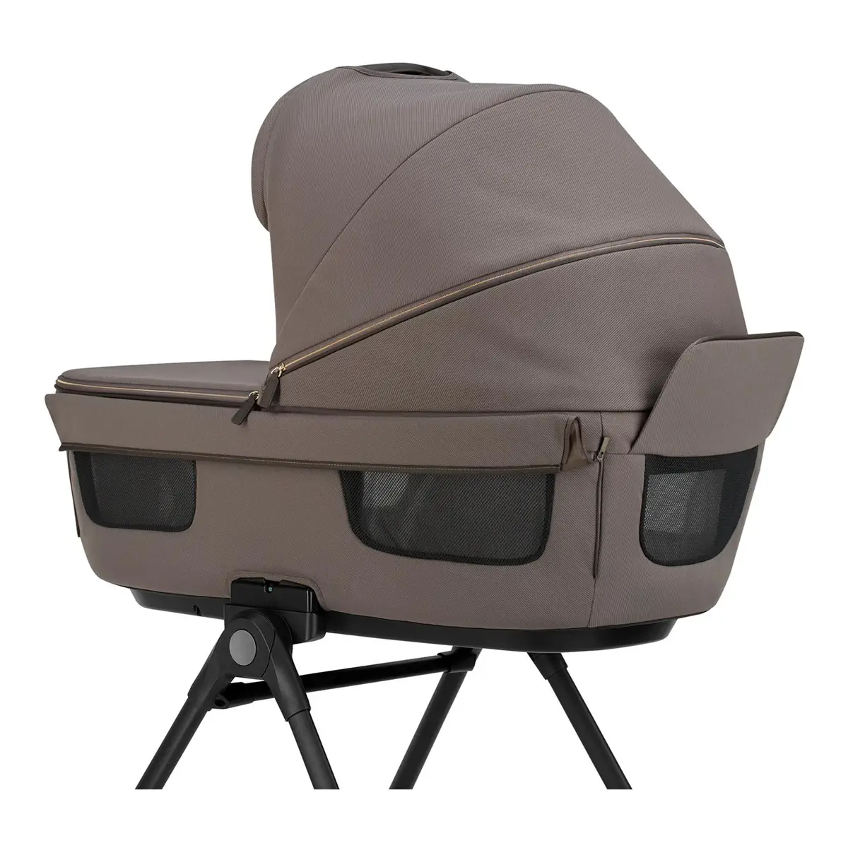 Culla Open Up ampia e ventilata La culla (79×37 cm) offre uno spazio confortevole con 5 finestre di aerazione indipendenti, fondo ventilato e schienalino reclinabile. Il guscio rigido protegge il bambino, mentre i tessuti traspiranti assicurano benessere.