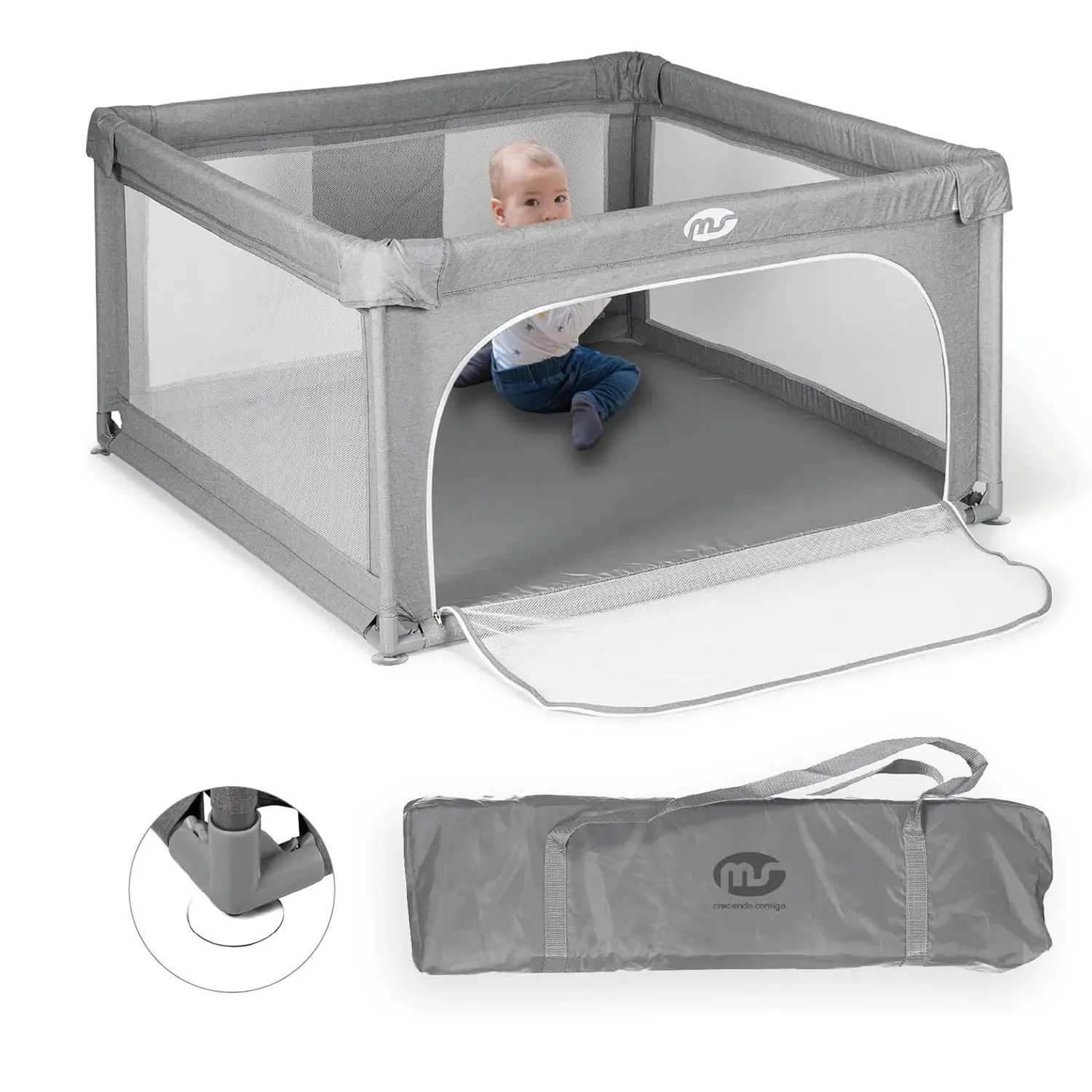 Box Parco Giochi L – 120x120 cm – Grigio – Pieghevole con Finestra a Rete