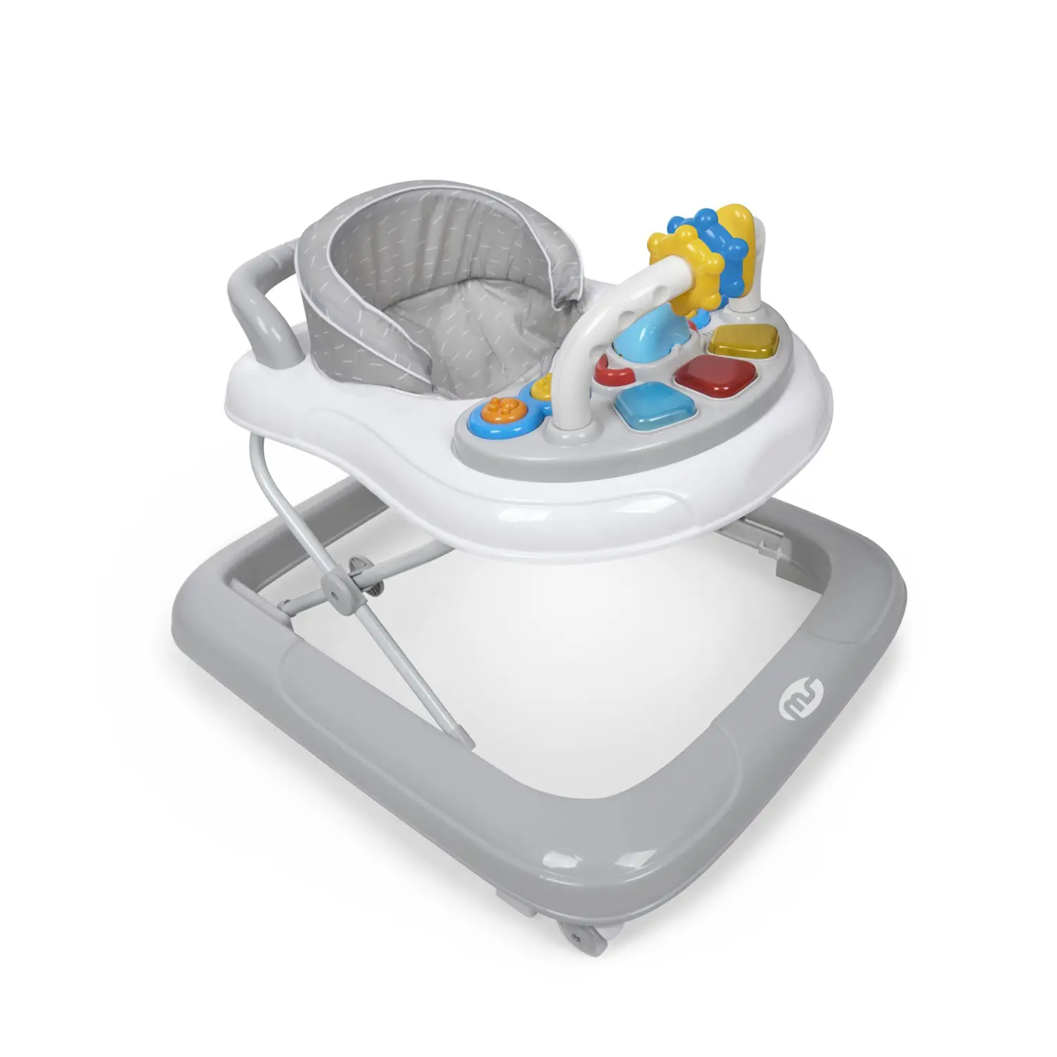 Baby Walker with Anti-tip Base and Sound Tray with Games, Gray