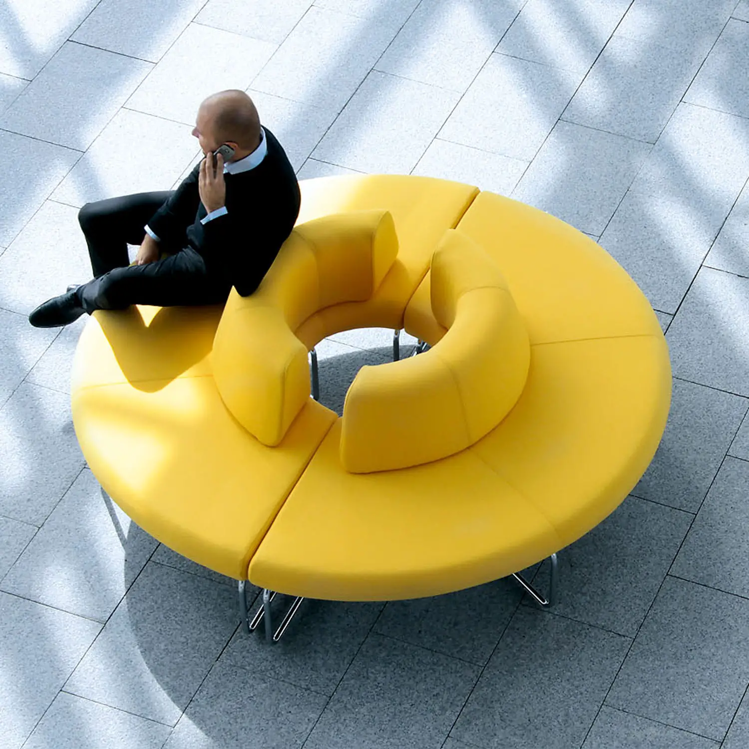 Configure semicircle modules in mustard yellow for a lively touch in any setting.