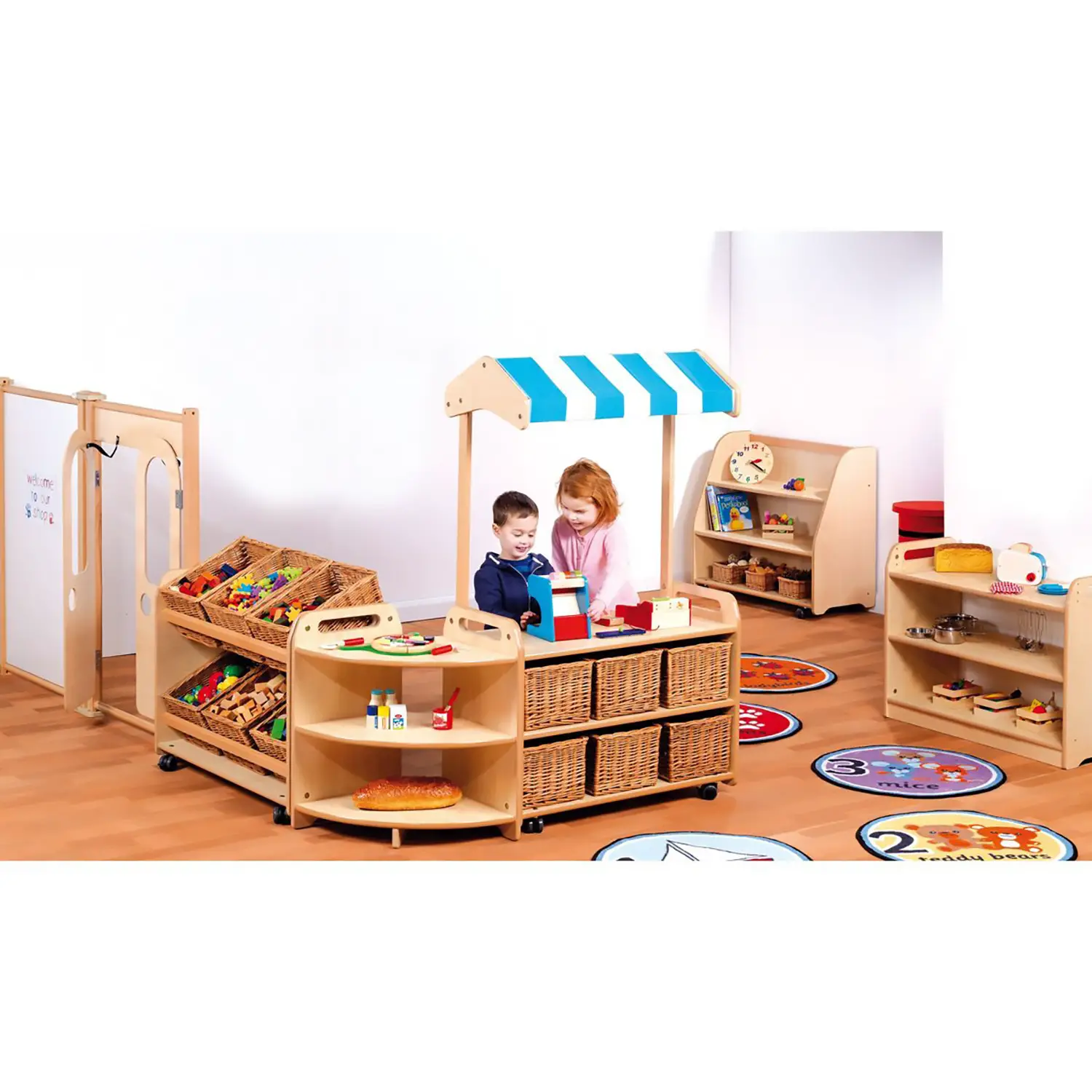Apprendimento Integrato: L’angolo è dotato anche di una lavagna bianca bifacciale, che può essere utilizzata per attività didattiche, come il conteggio degli oggetti o la scrittura di nomi e prezzi.