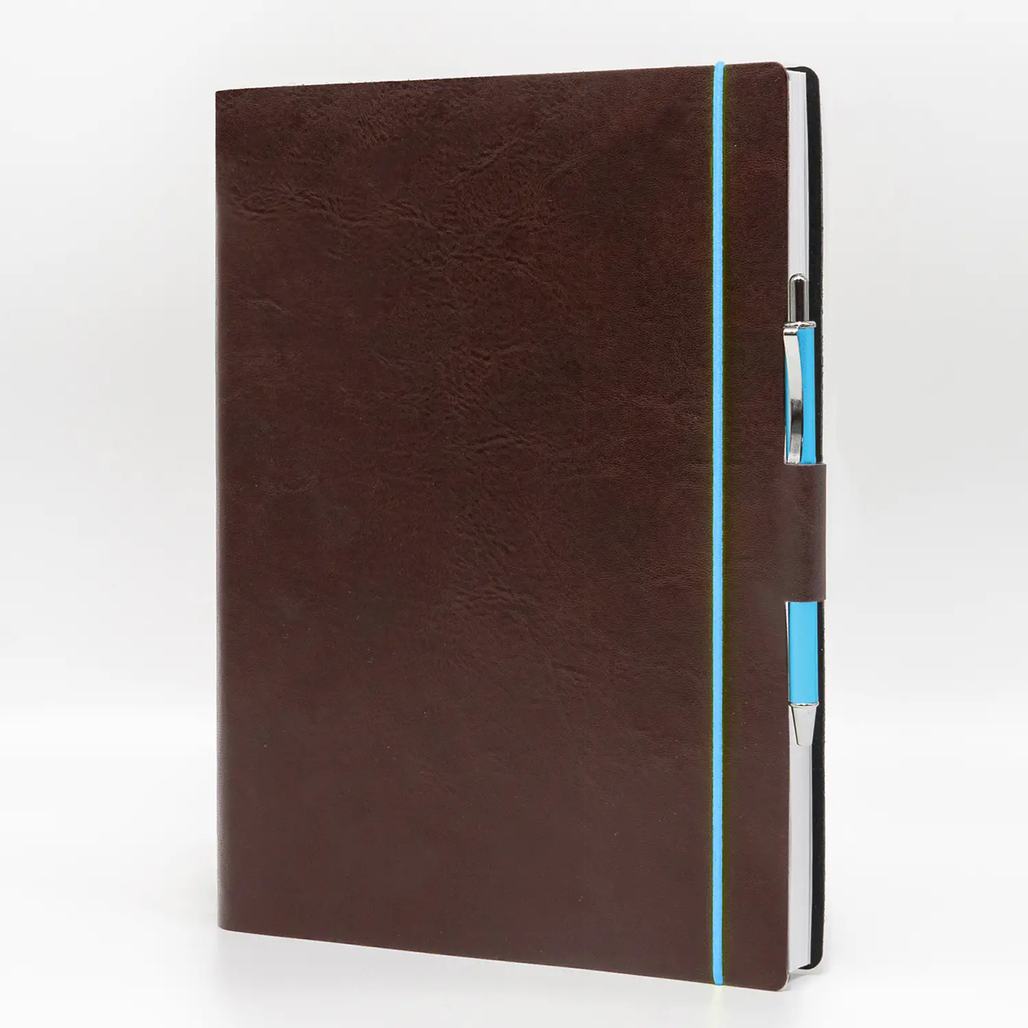 Design raffinato con chiusura elastica - La copertina in similpelle marrone dona un aspetto elegante e professionale. L’elastico integrato mantiene le pagine protette, perfetto per l’uso quotidiano in ufficio o in viaggio.