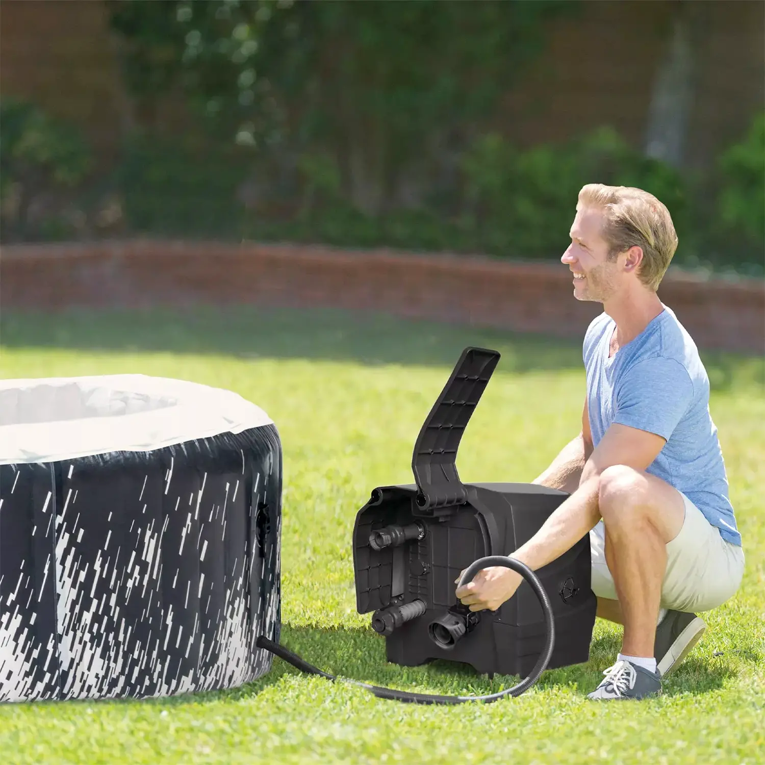 PureSpa Bubble Glow Deluxe – La tua oasi di relax firmata Intex Con la PureSpa Bubble Glow Deluxe di Intex, il benessere è a portata di tocco. Questo idromassaggio gonfiabile rotondo da 4 posti (196 x 196 x 71 cm) trasforma il tuo giardino o terrazzo in un rifugio di puro comfort. Le bolle d’aria riscaldate e il sistema di illuminazione LED integrato creano un’atmosfera suggestiva per un’esperienza sensoriale completa.