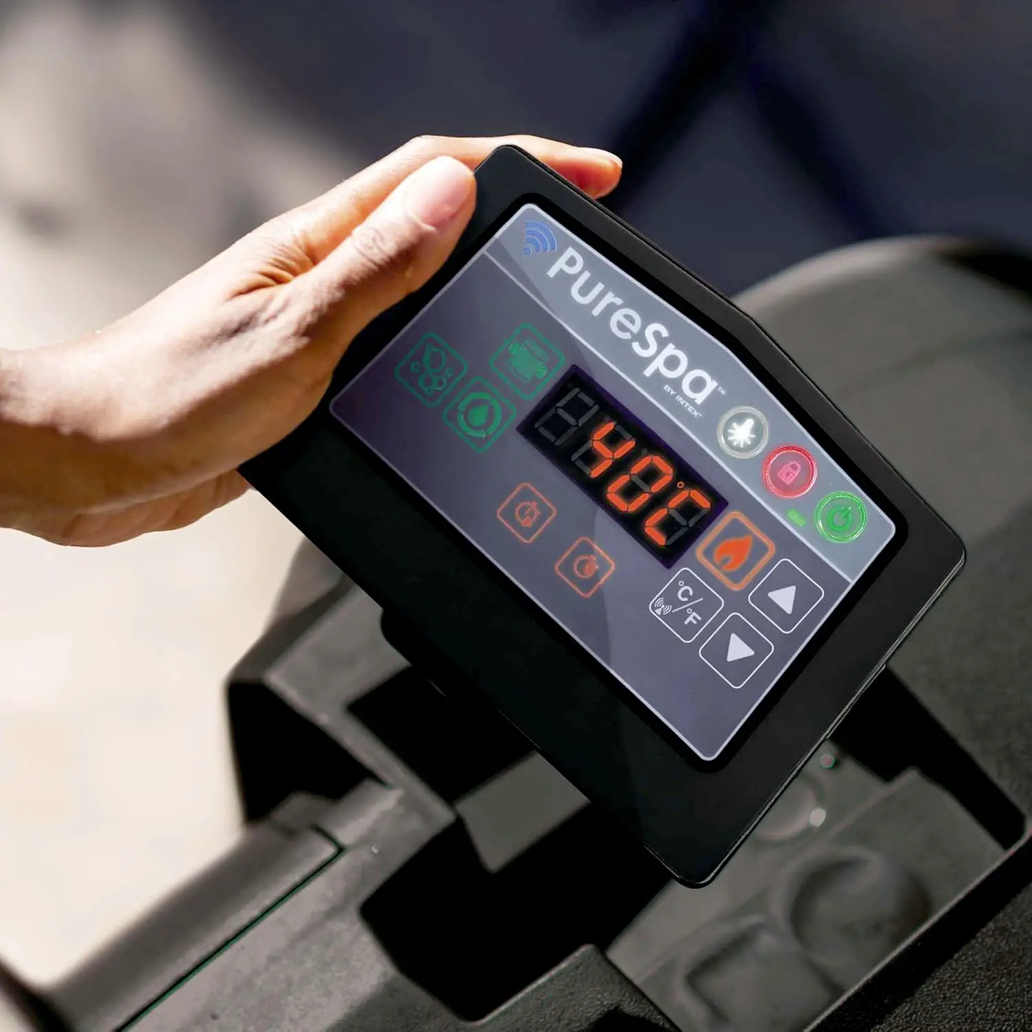 Benessere Deluxe con tecnologia avanzata Dotata di pannello di controllo wireless e connessione Wi-Fi tramite app, la Bubble Glow Deluxe consente di gestire temperatura, getti d’aria e illuminazione direttamente dallo smartphone. Il doppio sistema Hard Water & Saltwater mantiene l’acqua dolce, limpida e delicata su pelle e tessuti.