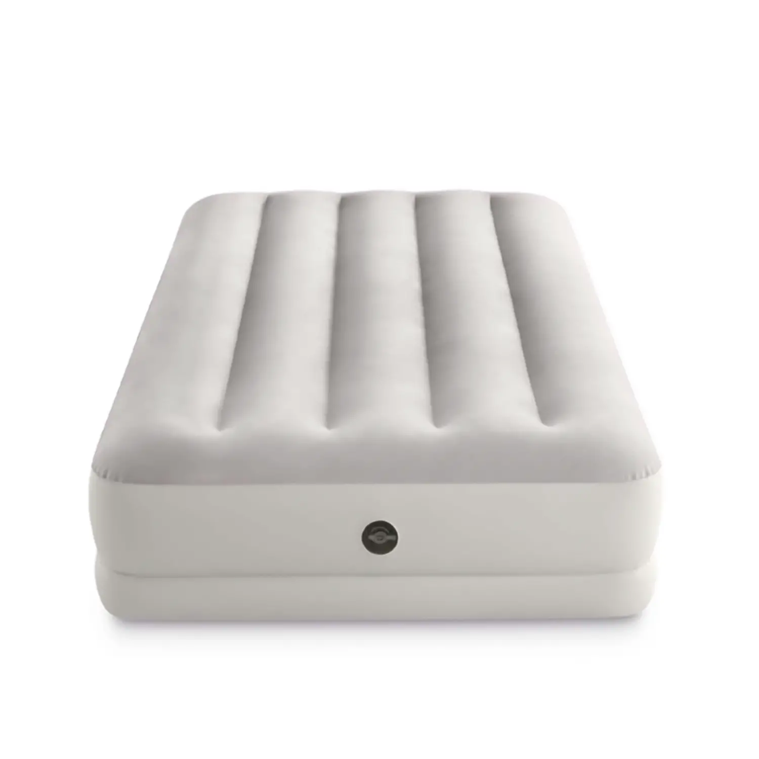 Dura-Beam Prestige Mid-Rise Single Inflatable Mattress with USB150 Pump from Intex Intex's Prestige Mid-Rise Inflatable Mattress is an excellent option for those looking for a comfortable and practical bed that can be used both indoors and outdoors. With its advanced technology and comfortable design, this mattress is perfect for guests, travel or camping.
