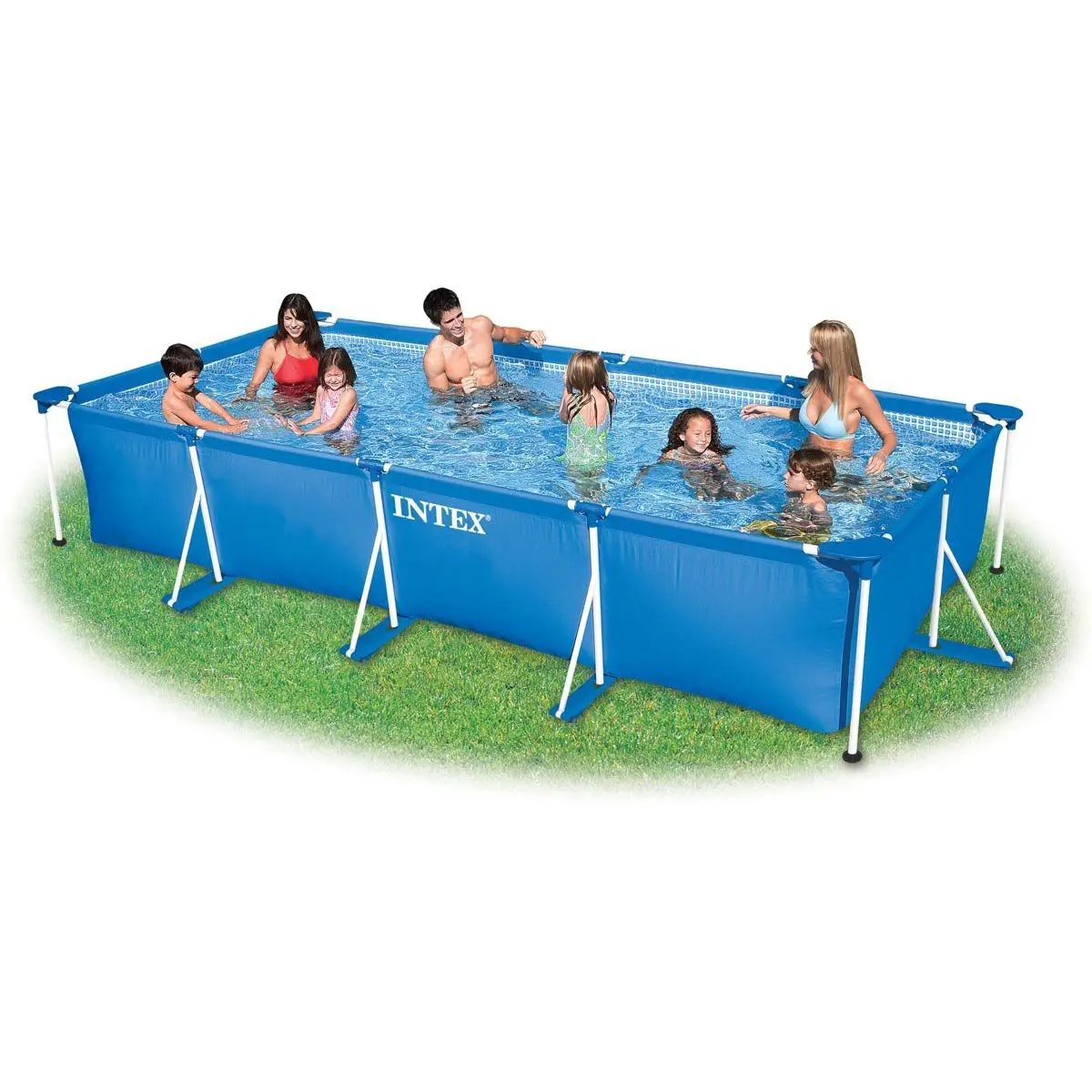 Piscina rettangolare cm. 450x220x84 con pompa filtro art. 28604 flusso d’acqua 2,006 l/h - flusso di sistema 1,798 l/h, voltaggio 220-240v, capacità acqua all’90% 7,127 litri, spazio occupato al suolo 508x277 cm, colore blu, tempo di montaggio 30’, 2 persone