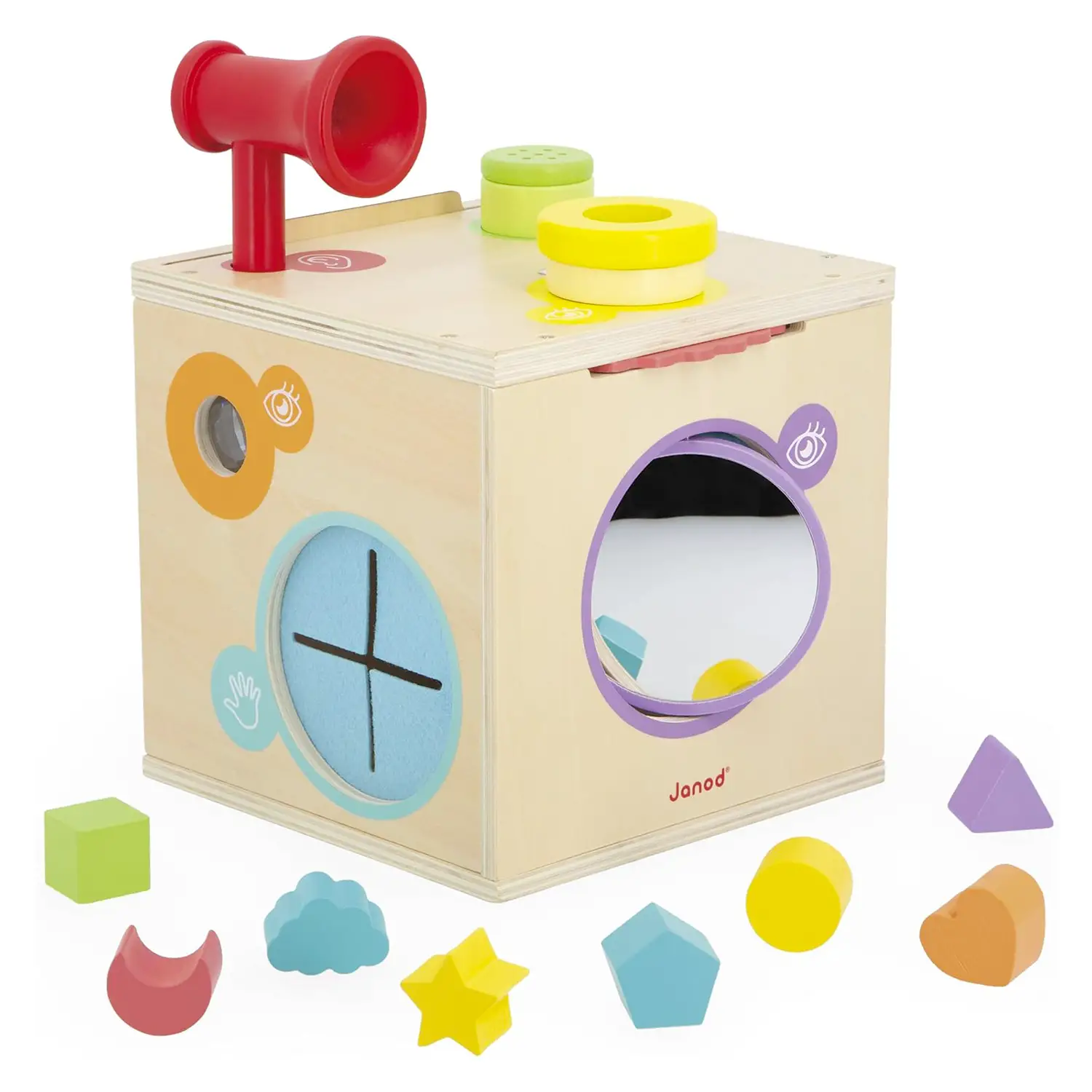 Un gioco educativo per momenti di complicità Grazie ai suoi colori e simboli associati a ogni senso, il cubo incoraggia la curiosità e l’apprendimento. I 12 accessori rimovibili offrono infinite possibilità di esplorazione, trasformando ogni momento di gioco in un’avventura stimolante.