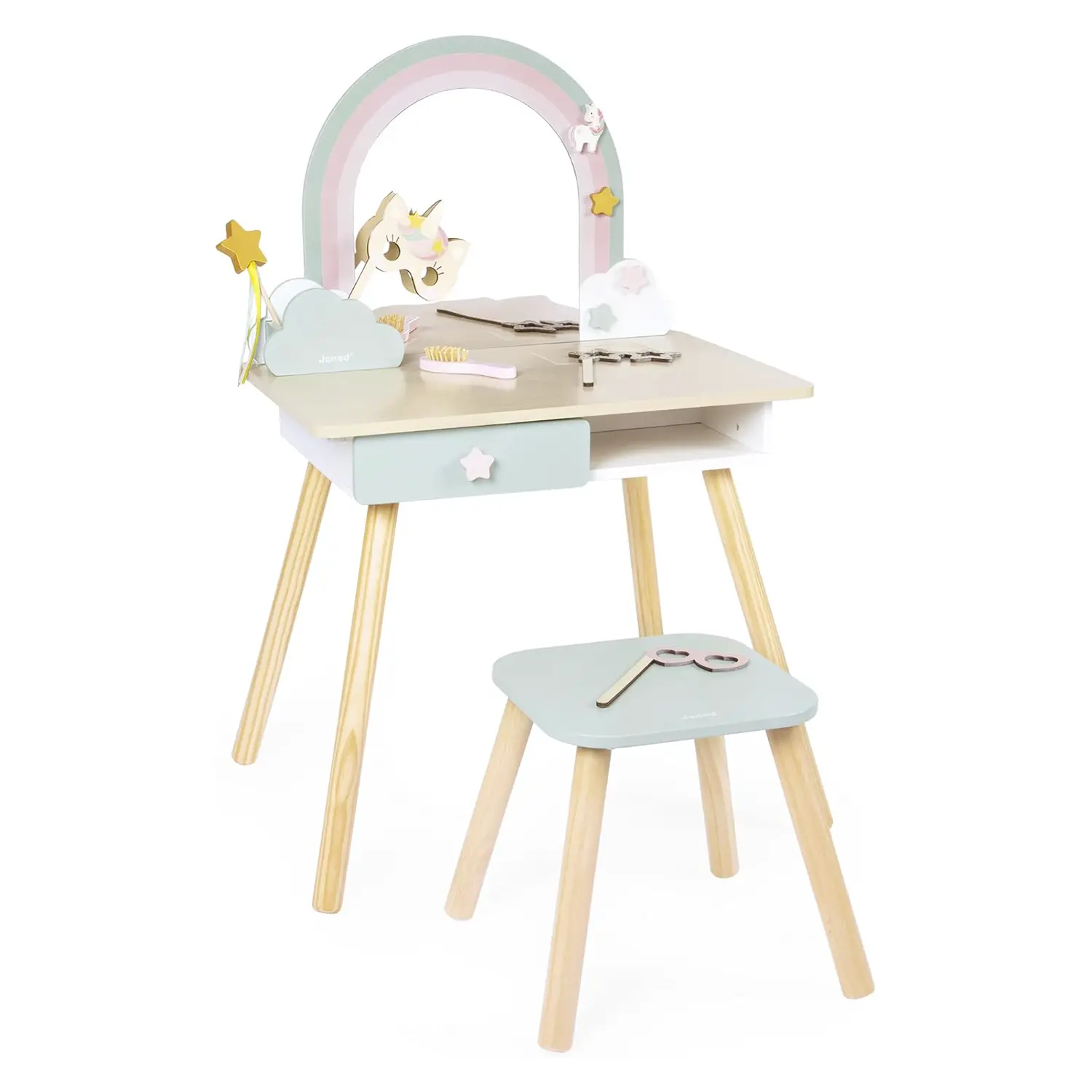 Hairdressing Station Table With Stool Unicorn Theme - Janod