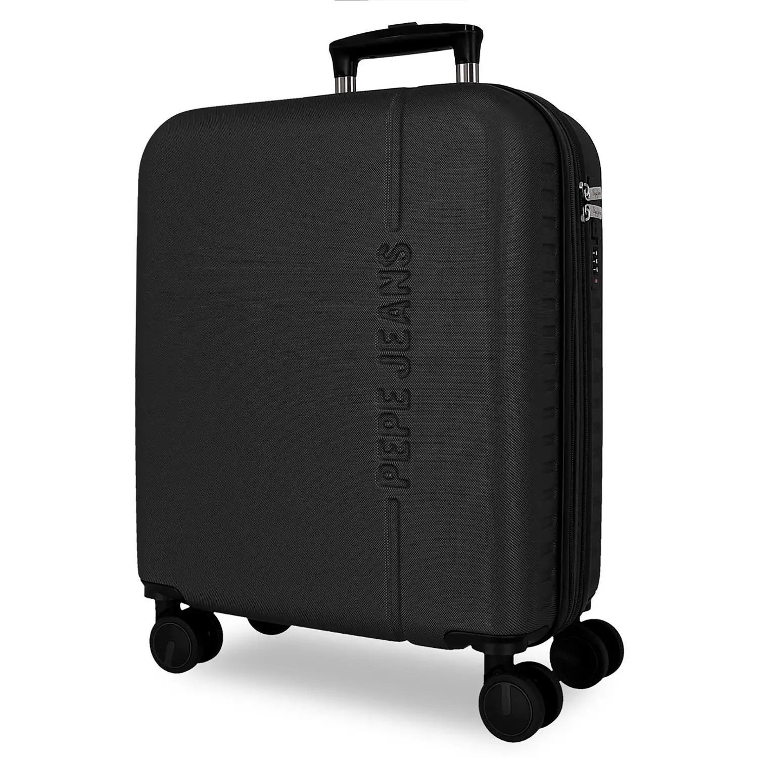Pepe Jeans Montana – Valigia da Cabina Nera 55 cm Valigia rigida da cabina 40 x 55 x 20 cm (misure inclusive di maniglia e ruote), con capacità di 37 litri e peso di circa 2,6 kg. Ideale come bagaglio a mano per viaggi brevi e weekend fuori porta.
