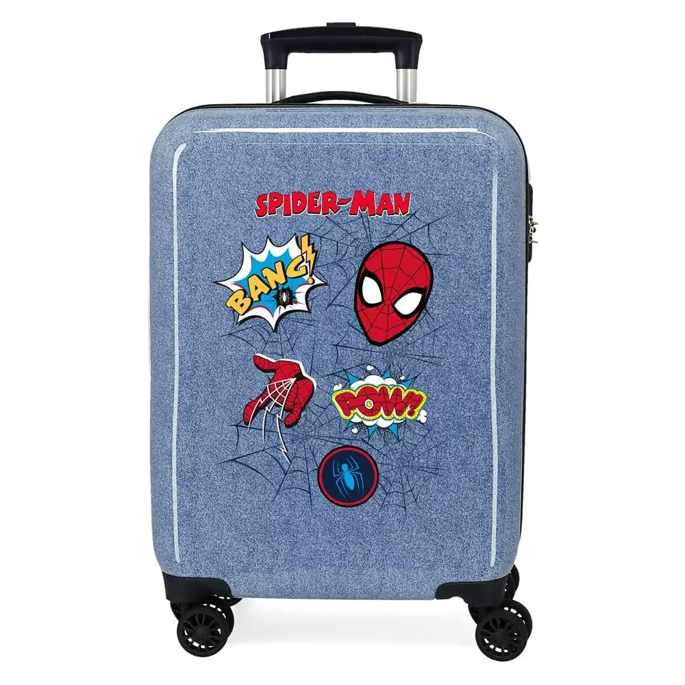 Marvel Spiderman Denim Blue suitcase: the perfect choice for little ones The Marvel Spiderman Denim Blue suitcase is the perfect choice for little ones who like to travel in style. This cabin suitcase measures 55 cm x 38 cm x 20 cm (wheels and handle included), has a capacity of 34 l and weighs only 2.6 kg. Made of ABS, a rigid and lightweight material, this suitcase is ready to take on any adventure.