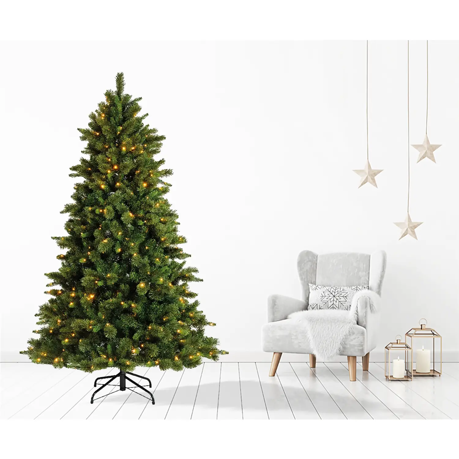 - Rami Folti e Realistici: Rami densi che riproducono l’aspetto di un vero abete, per un effetto naturale e elegante.