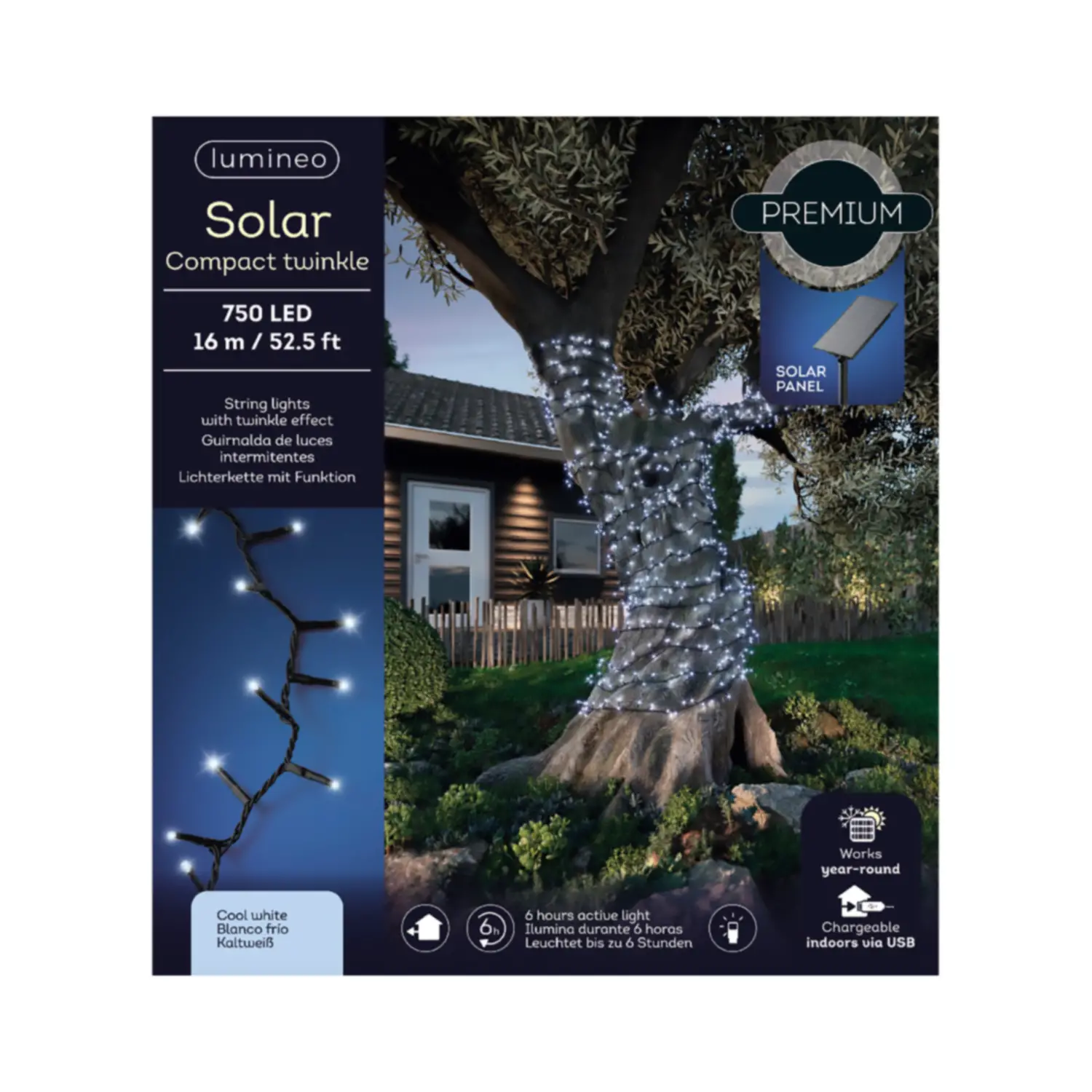 Luci di Natale Lumineo Solar – 750 LED Bianco Freddo – Filo da 16 Metri