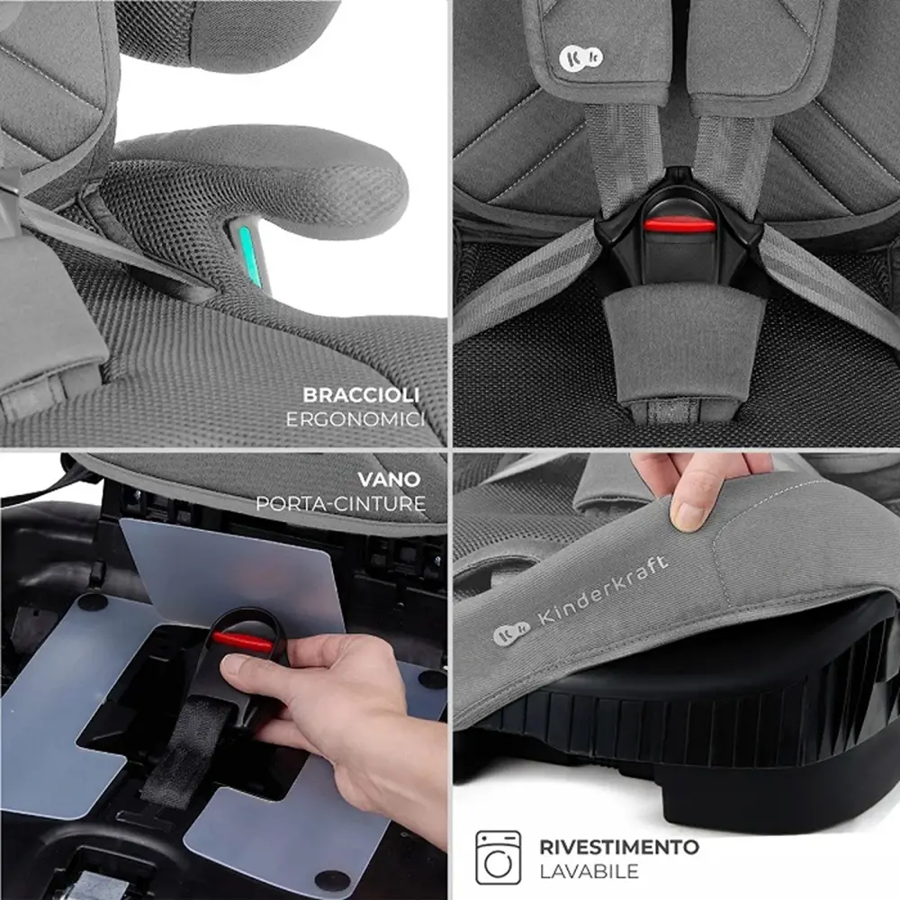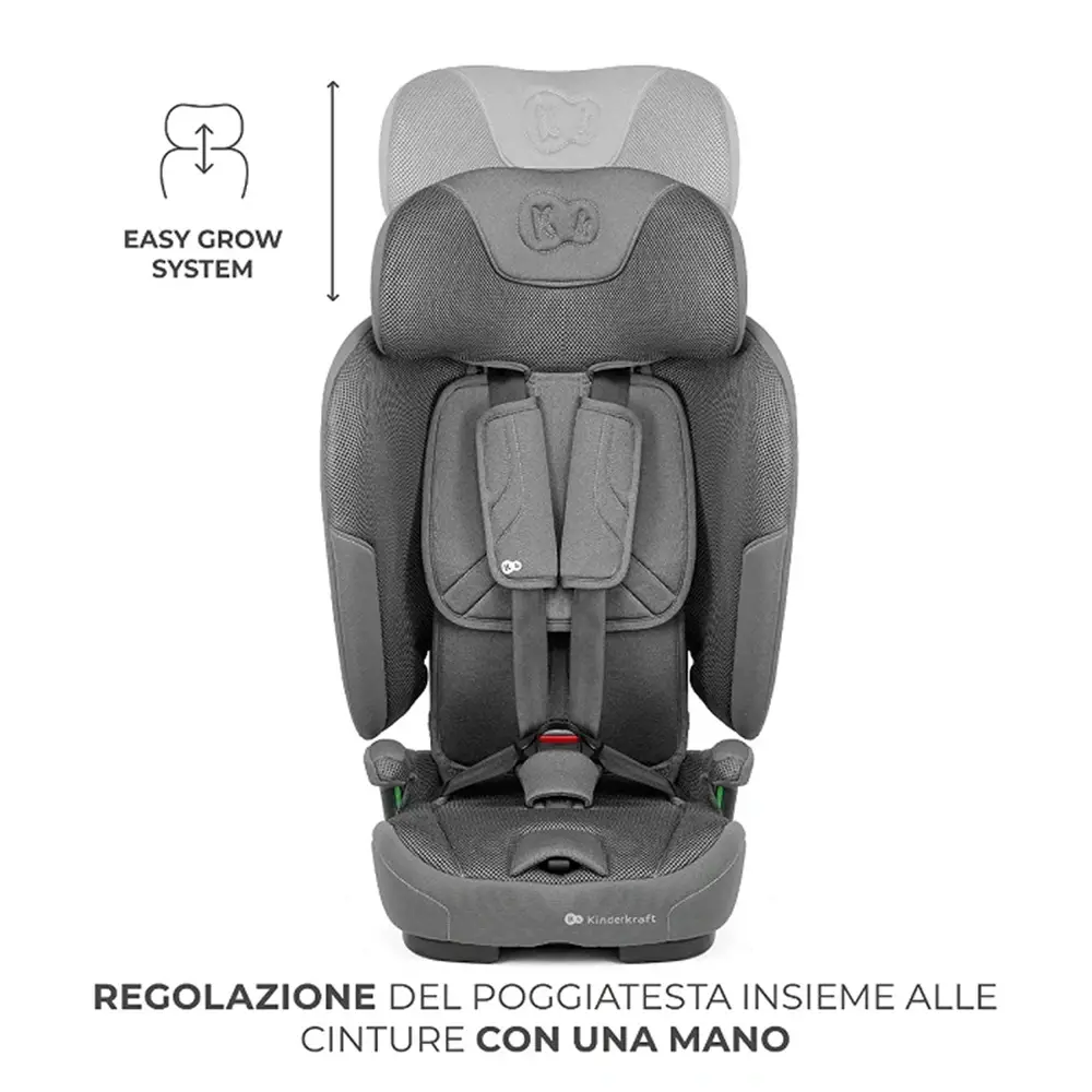 EASY GROW SYSTEM: grows with the child Simultaneous adjustment of headrest and belt makes the seat always fit perfectly, adapting to the child's growth effortlessly.