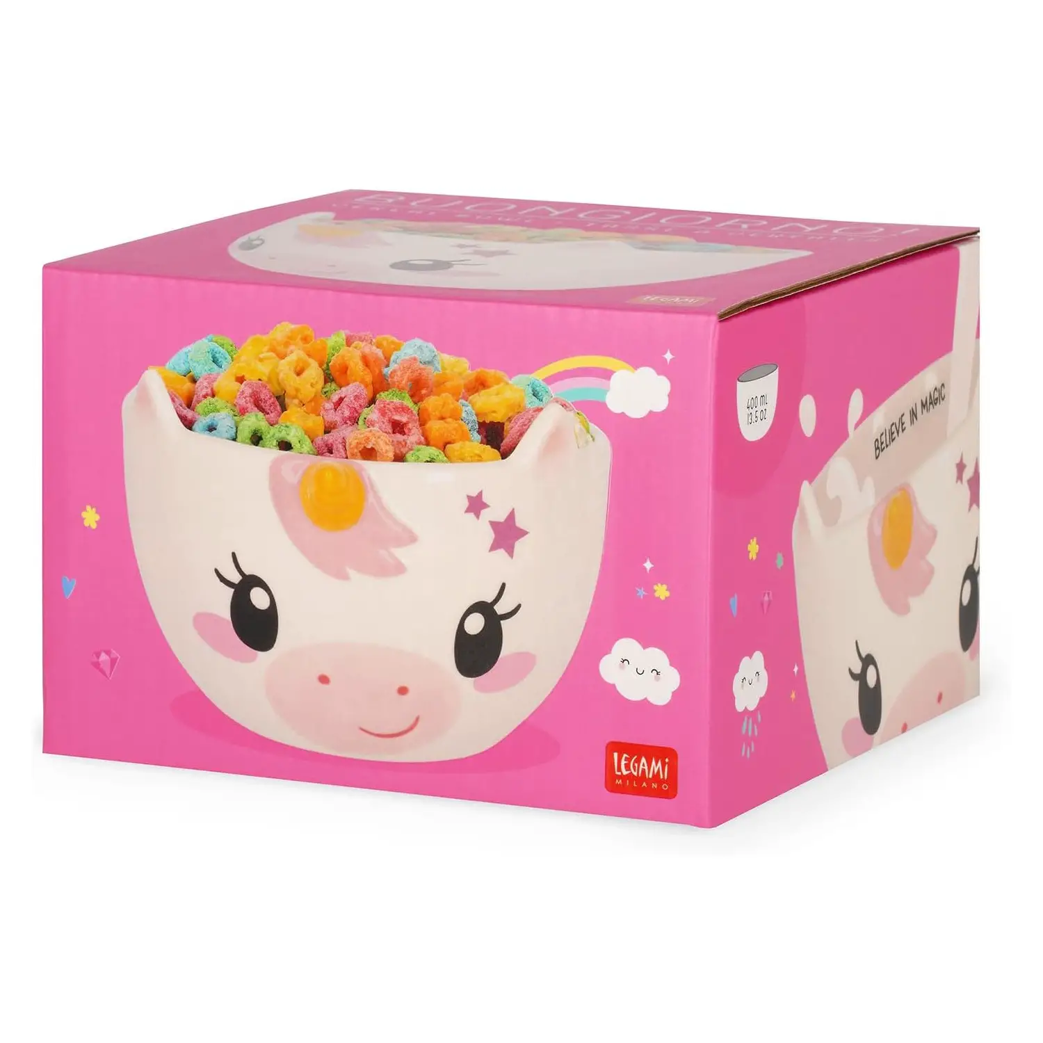 Colazione magica ogni giorno Inizia la giornata con un tocco di fantasia grazie alla Tazza in Gres per Cereali “Buongiorno!” Unicorn di Legami. Perfetta per latte, cereali, yogurt o zuppe, porta colore e allegria alla tua tavola del mattino.