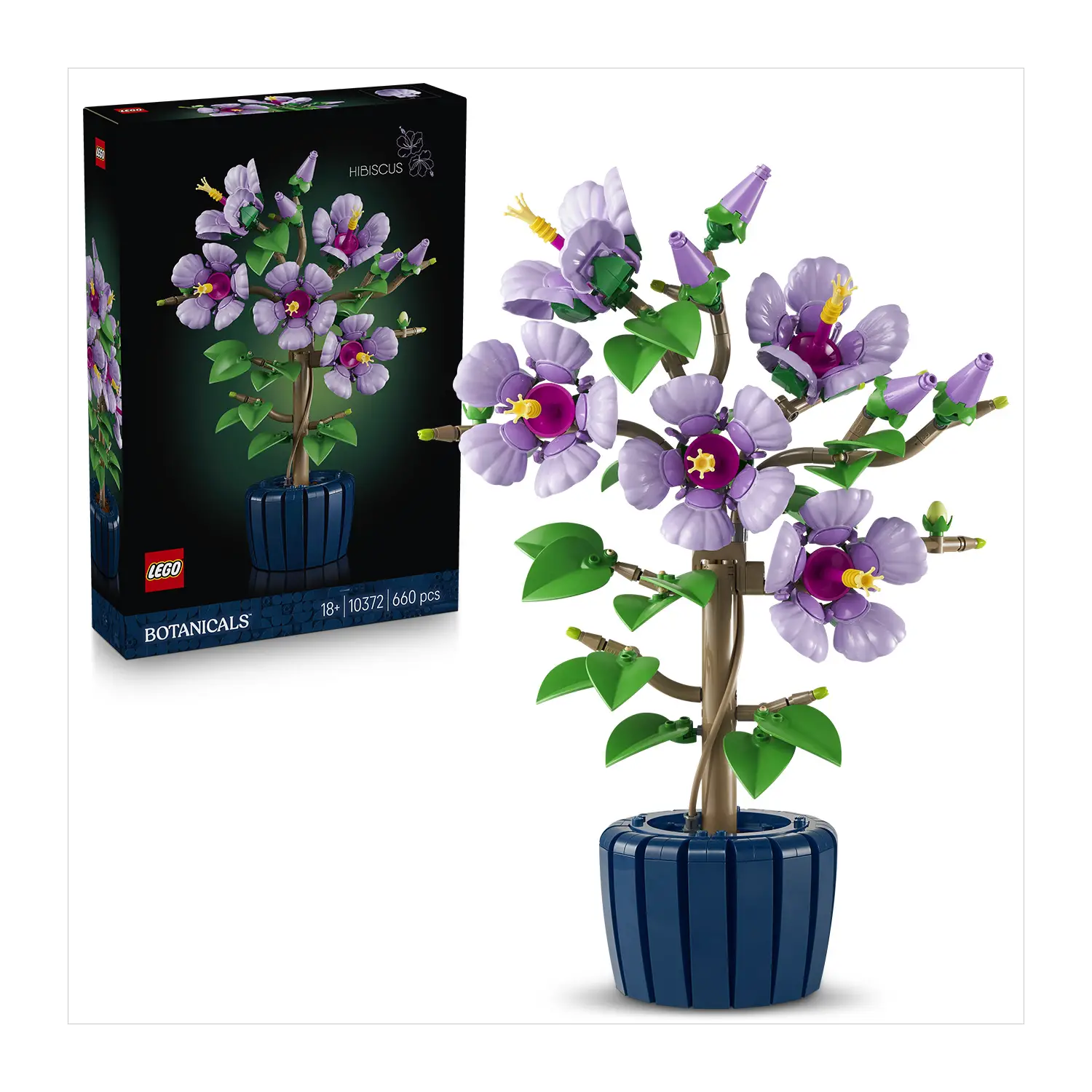Design floreale LEGO per adulti scopri il set LEGO Botanicals Ibisco 10372, un’elegante pianta artificiale con fiori e vaso costruibile. Ideale per chi cerca decorazioni raffinate e un progetto creativo rilassante.