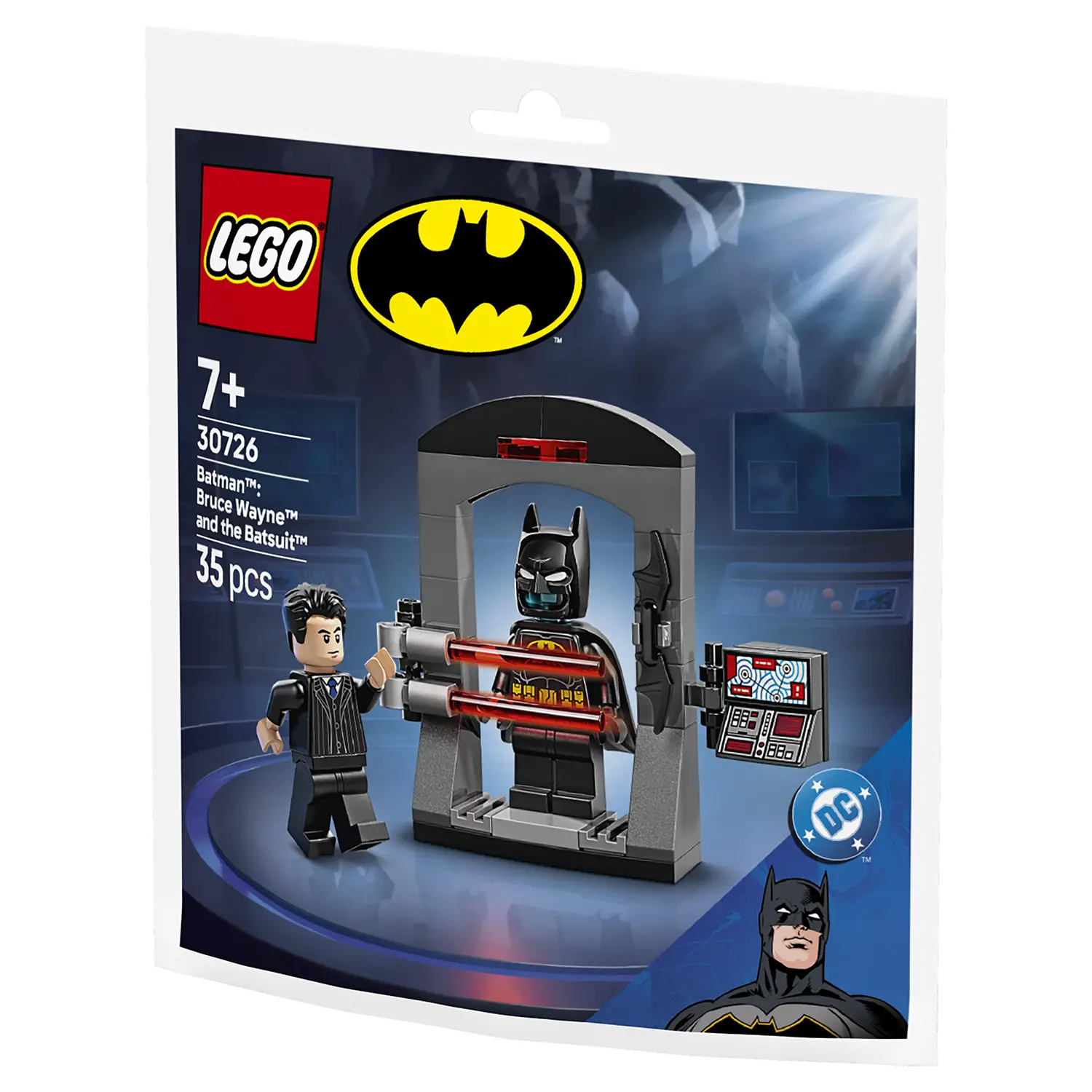 Bruce Wayne e La Bat-tuta 30726 Nella Batcaverna™, Bruce Wayne™ è al Batcomputer. Il set include il costume di Batman™, protetto da raggi laser, offrendo una sfida avvincente per i bambini.